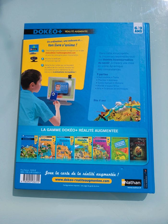 L'ENCYCLOPÉDIE DOKÈO+ RÉALITÉ AUGMENTÉE 6/9 ANS ÉDITIONS NATHAN Astronomie, Terre, plantes, animaux, corps humain, histoire, monde d'aujourd'hui, art, sciences et techniques... pour plonger dans 75 thèmes incontournables du savoir des 6-9 ans! En très bon état Mes autres Dokéo : #dokeomooglou Mes livres par thèmes : #livresciencesmooglou Pour voir mes autres livres enfants : #livreenfantmooglou