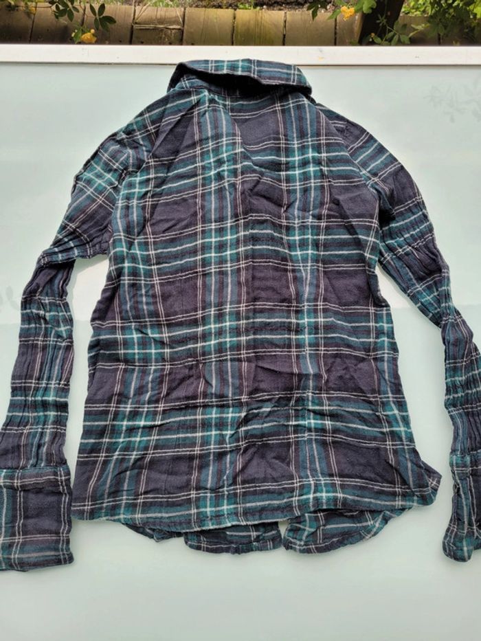 Très belle chemise de la marque United Colors of Benetton, noire, grise et vert bouteille à carreaux Taille 10/12 ans (il n'y a plus d'étiquette, correspond à un 10 ans pour une enfant rondelette et 12 pour une enfant plus menue) Bon état, il manque un bouton à un poignet et un deuxième est cassé Pour voir mes autres vêtements 10/12 ans: #12ansfillemooglou #10ansmooglou #benettonmooglou