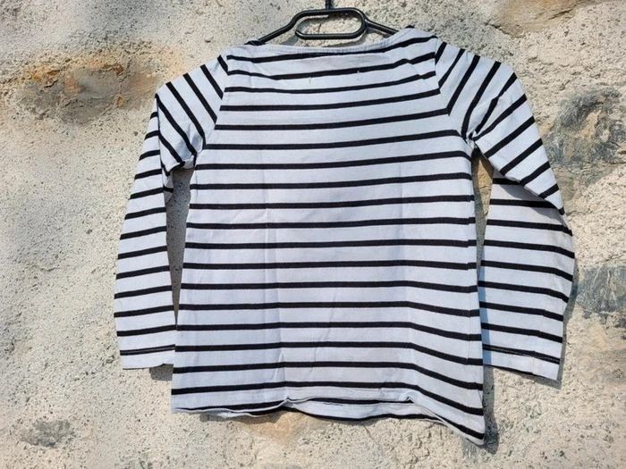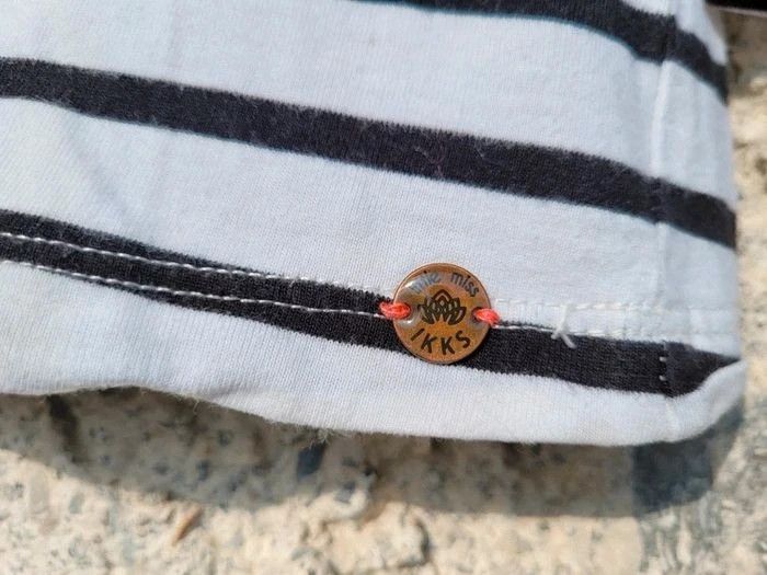 Superbe haut IKKS manches longues blanc rayé noir, motifs orientaux, 8 ans