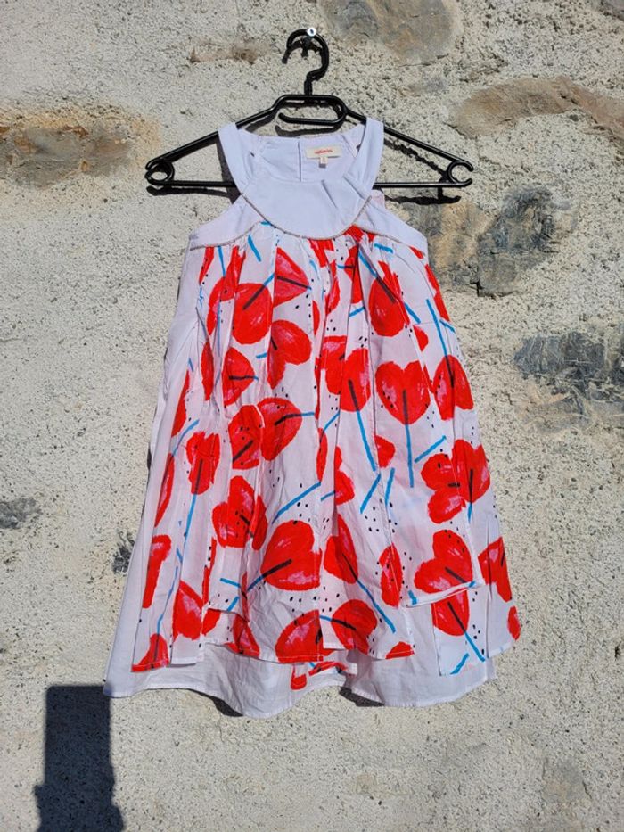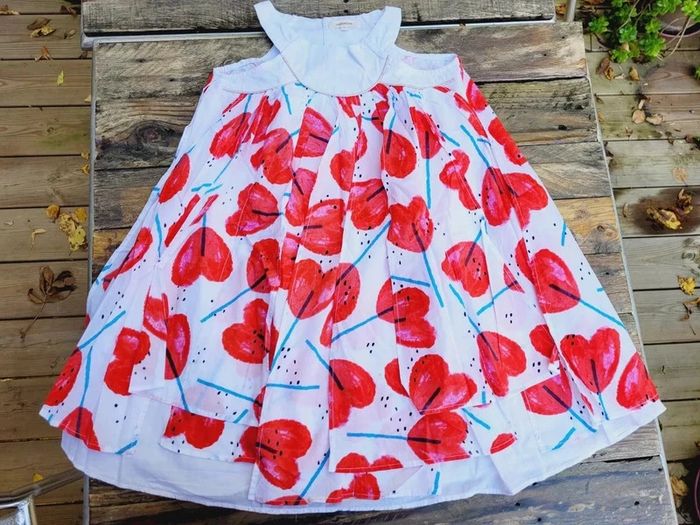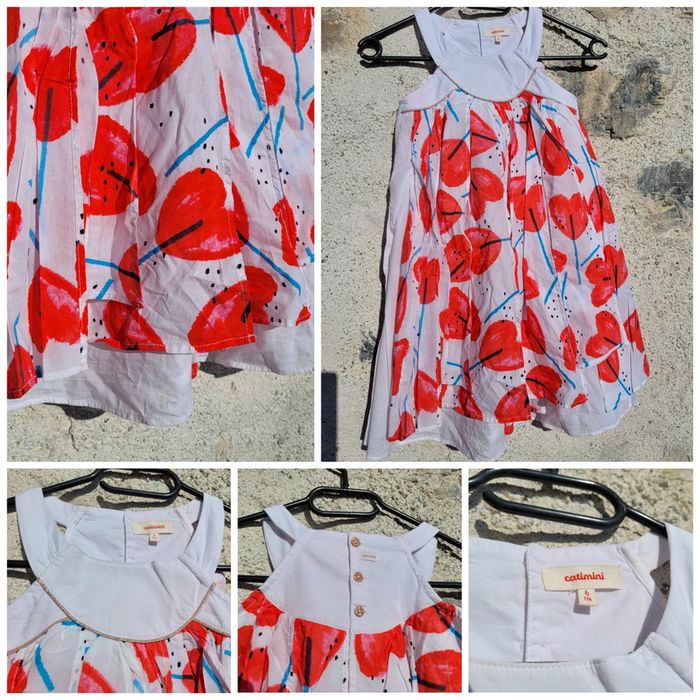 Superbe robe d'été de la marque Catimini, blanche à motifs coquelicots en forme de cœurs, 6 ans, très bon état Pour voir les autres articles en 6 ans : #6ansfillemooglou #catiminimooglou