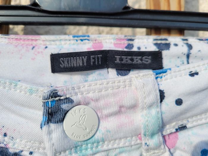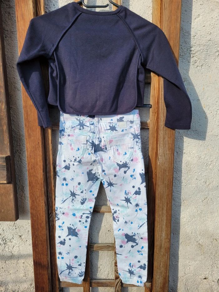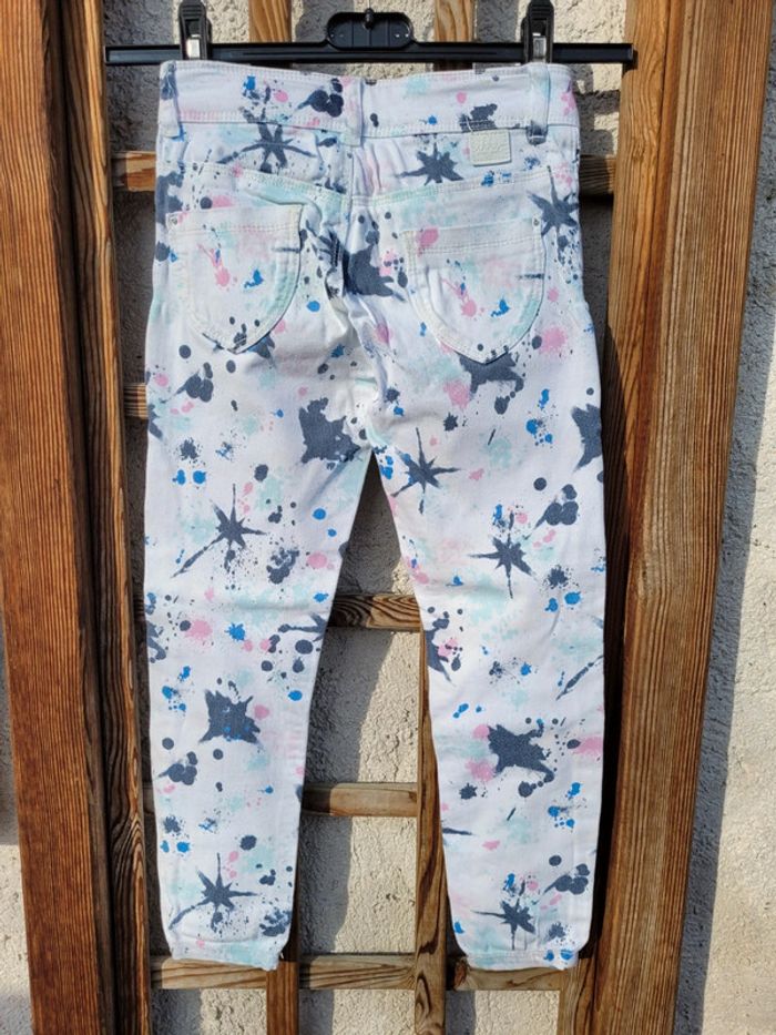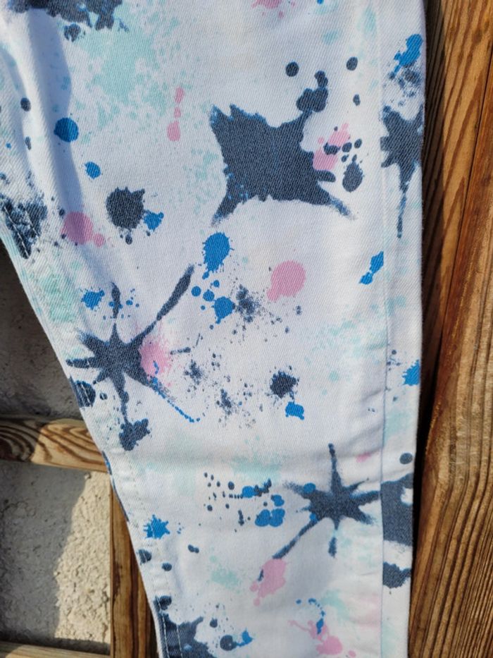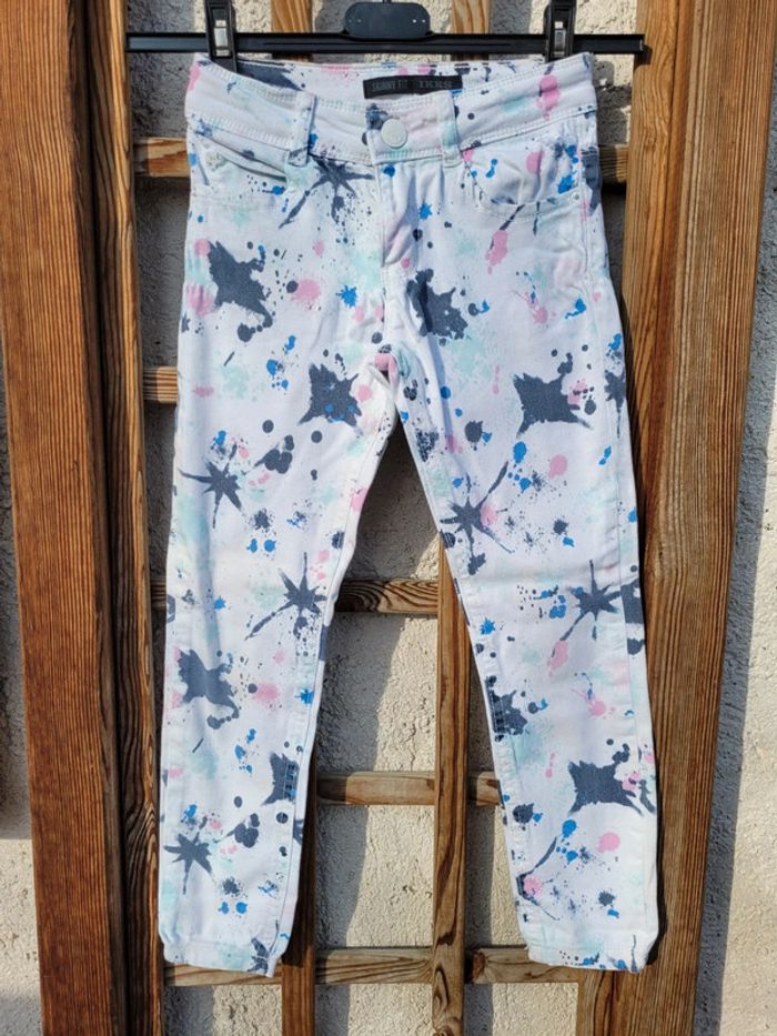 - Un pantalon blanc motif taches de peinture, bine porté mais encore en bon état