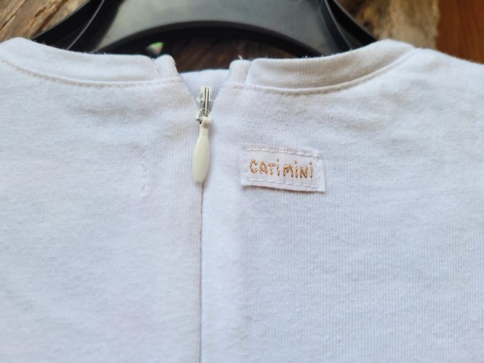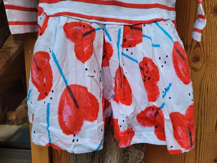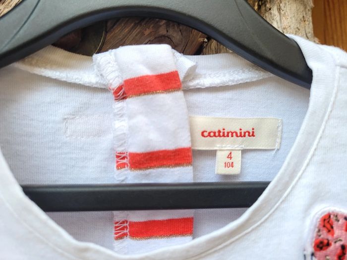 Superbe robe Catimini, blanche à fleurs et rayures rouges, 4 ans - photo numéro 7