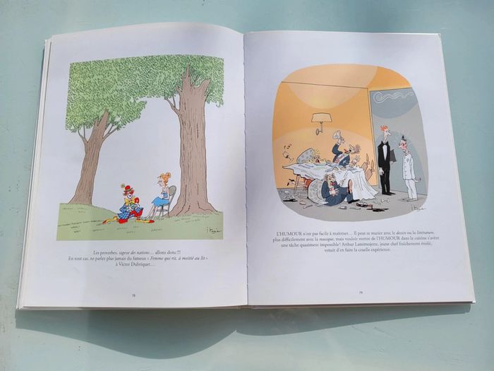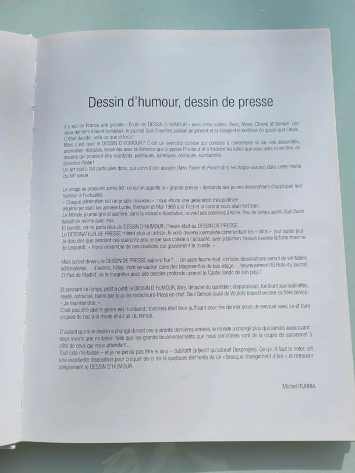 Il y eut en France une grande "Ecole de Dessin d'humour" avec entre autres, Bosc, Mose, Chaval et Sempé. Les deux derniers étaient bordelais, le journal Sud Ouest les publiait largement et ils faisaient le bonheur du gosse que j'étais. C'était décidé : voilà ce que je ferai ! Mais c'est quoi le dessin d'humour ? C'est un exercice curieux qui consiste à contempler la vie, ses absurdités, ridicules , tyrannies avec la distance que suppose l'humour et à traduire les idées que vous avez su en tirer, en dessins qui pourront être mordants , poétiques, satiriques, oniriques , surréalistes... Livre en très bon état Pour voir mes autres livres enfant : #livreenfantmooglou