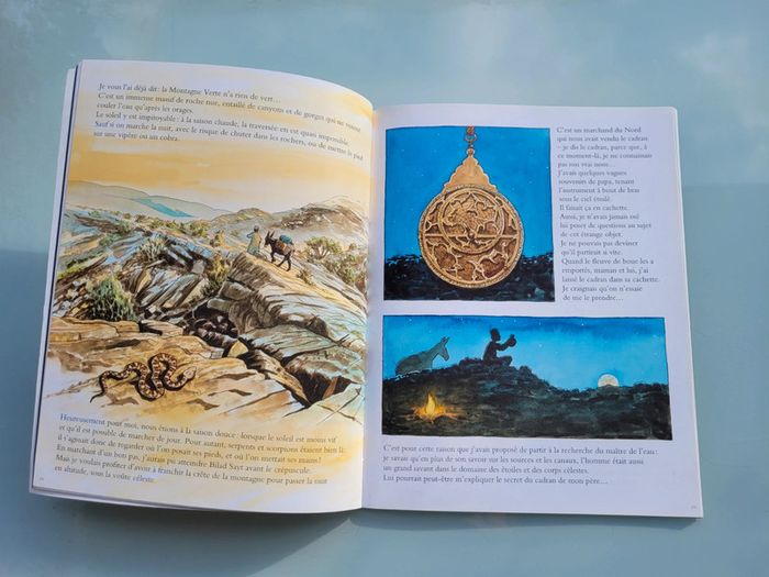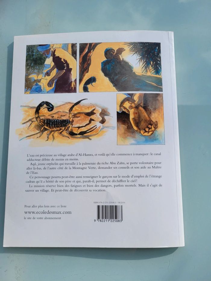 LE SECRET DE L'ASTROLABE Quand les propriétaires du falaj (le canal d’irrigation de la palmeraie) ont commencé à se disputer parce que l’eau manquait, Aqil s’est porté volontaire pour aller quérir Abou Hâroûn, le Maître de l’eau, un savant qui parcourt le pays, prêt à apporter son aide aux villageois en cas de besoin. Depuis que ses parents sont morts dans un fleuve de boue, Aqil cherche la paix. Mais il a une autre raison de partir à la rencontre du vieux sage. Passionné par les étoiles, il a des questions à lui poser sur le mystérieux cadran que lui a laissé son père. Comment s’en servir ? Quand enfin il trouve Abou Hâroûn, celui-ci l’avertit : l’étude des astres et du firmament peut prendre toute une vie. Ça tombe bien : Aqil a la vie devant lui ! Format : 22,50 x 28,70 x 1,00 cm Nombre de pages : 48 Prix du neuf : 12.70€ Livre en très bon état, couverture légèrement abîmée Pour voir mes autres livres enfants : #livreenfantmooglou #lecoledesloisirsmooglou