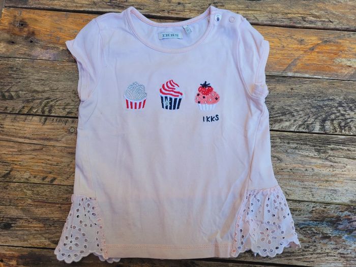 Superbe ensemble de la marque IKKS, composé d'un pantalon jogging gris anthracite à toutes petites paillettes et haut sans manches rose clair à motifs cupcake, dentelle par endroit, tres bon état Pour voir mes autres articles en 2 ans : #2ansfillemooglou #IKKSmooglou