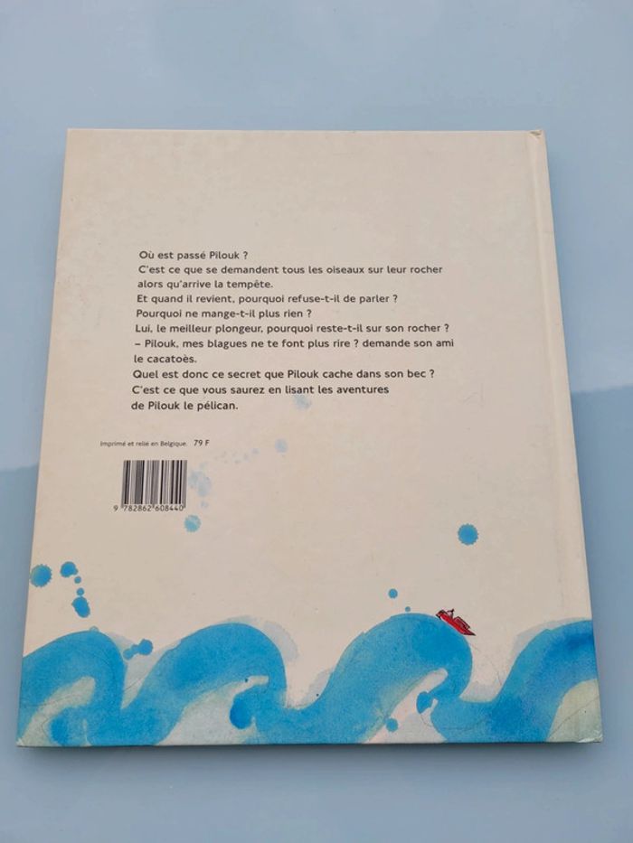 Où est passé Pilouk ? C'est ce que se demandent tous les oiseaux sur leur rocher alors qu'arrive la tempête. Et quand il revient, pourquoi refuse-t-il de parler ? Pourquoi ne mange-t-il plus rien ? Lui, le meilleur plongeur, pourquoi reste-t-il sur son rocher ? - Pilouk, mes blagues ne te font plus rire ? demande son ami le cacatoès. Quel est donc ce secret que Pilouk cache dans son bec ? C'est ce que vous saurez en lisant les aventures de Pilouk le pélican. Livre en très bon état edition de 1998 Pour voir mes autres livres: #livreenfantmooglou