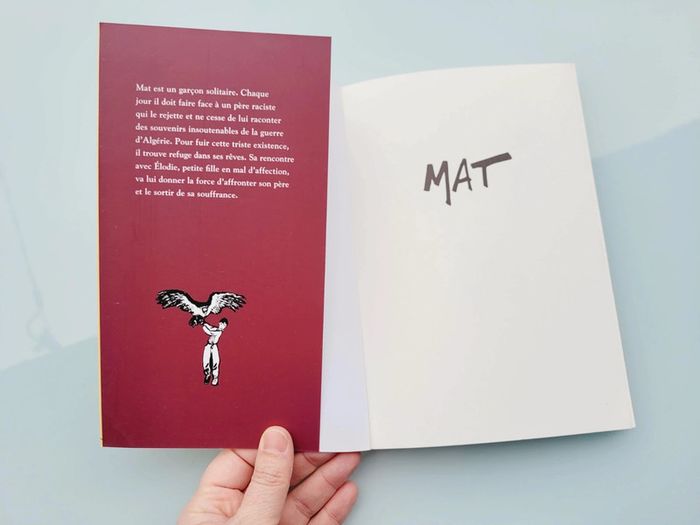 Le portrait sensible et positif d'un adolescent malmené par la vie. Mat est un garçon solitaire. Chaque jour il doit faire face à un père raciste qui le rejette et ne cesse de lui raconter des souvenirs insoutenables de la guerre d'Algérie. Pour fuir cette triste existence, il trouve refuge dans ses rêves. Sa rencontre avec Élodie, petite fille en mal d'affection, va lui donner la force d'affronter son père et de sortir de sa souffrance. Nourri de sa propre histoire, Baudoin dessine un Sud marqué par la pauvreté. 120 pages  Couverture souple 150 x 215 mm Date de parution : 06/09/2012 Pourvoir mes autres livres: #bdmooglou #livreenfantmooglou