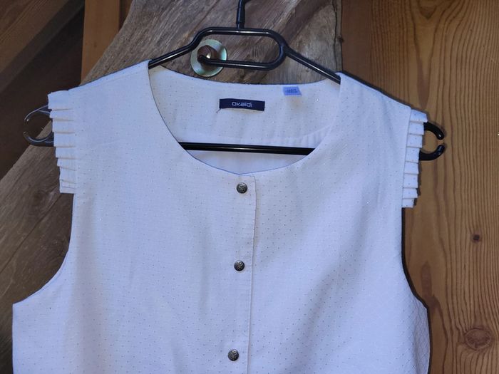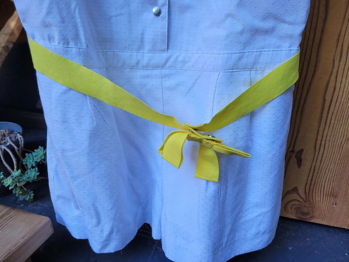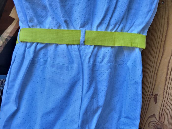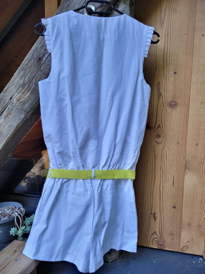 Magnifique combishort Okaïdi blanc, motifs argentés, ceinture jaune, 14 ans, neuf