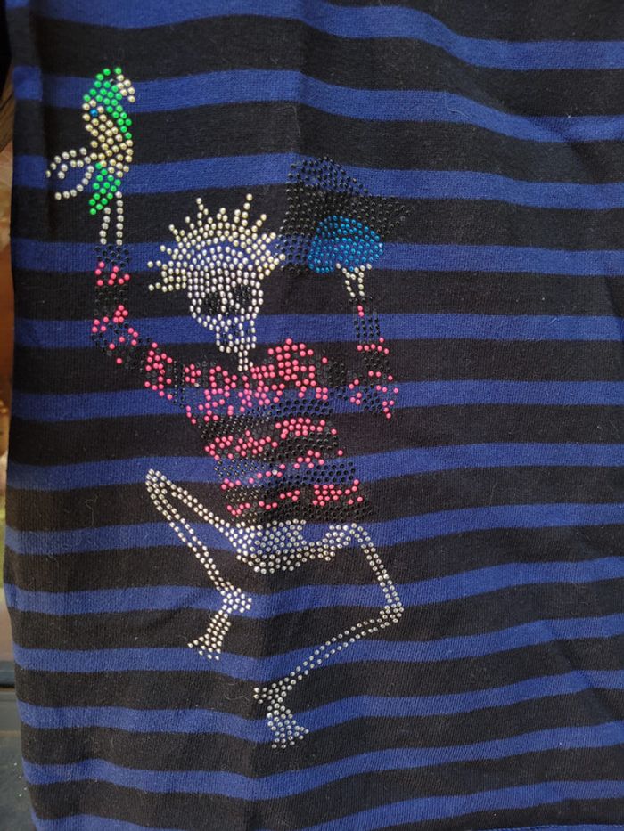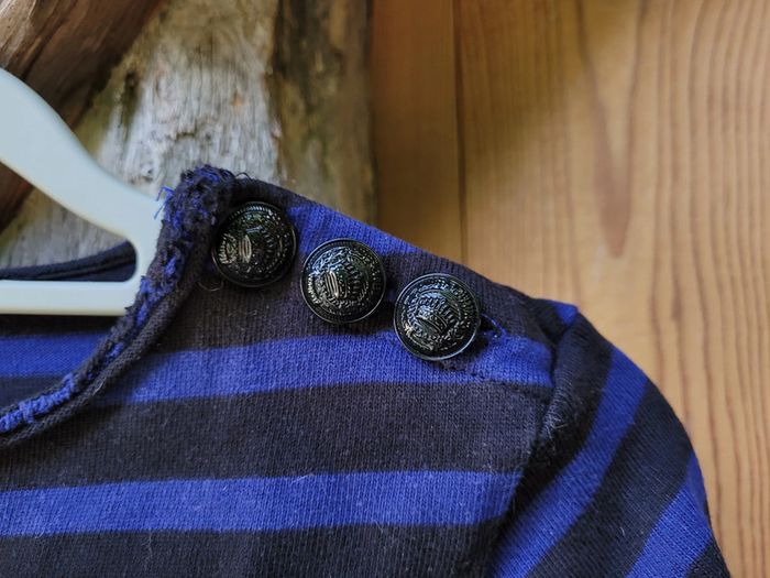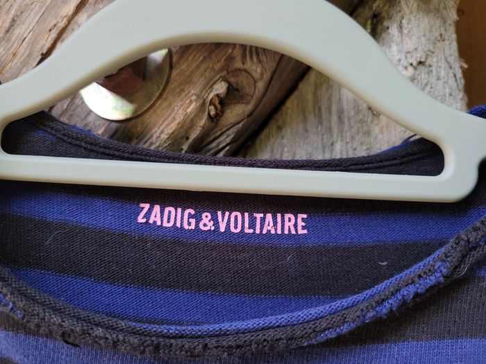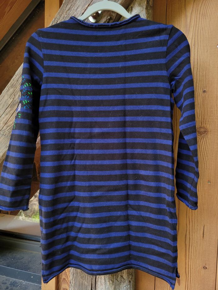 Superbe robe 100% coton de la marque Zadig & Voltaire, bleu marine rayée noire, strass sur le bas de la robe et sur la manche, col rond fermeture gros boutons noirs, 12 ans, très bon état Pour voir mes autres articles en 12 ans : #12ansfillemooglou #zadigmooglou