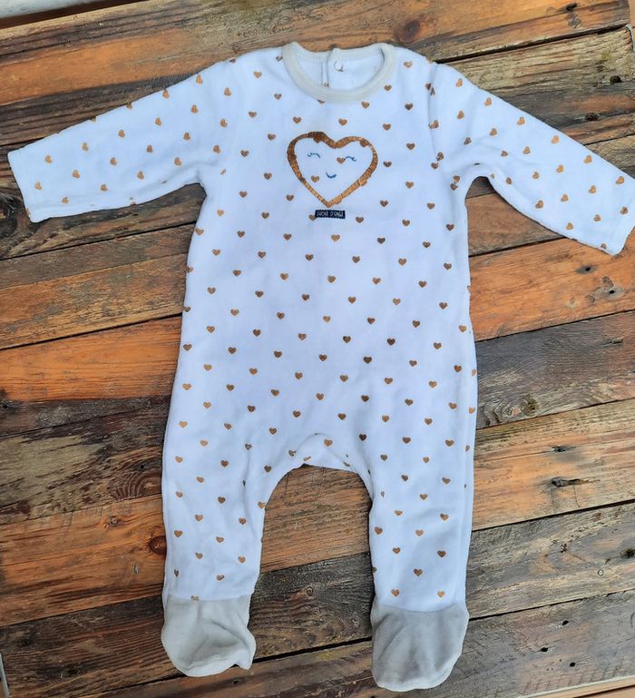 Superbe grenouillère sucre d'orge, blanche à coeurs dorés 🤎, 9 mois - photo numéro 1