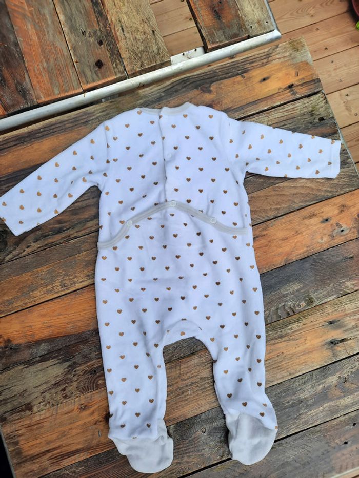 Superbe grenouillère sucre d'orge, blanche à coeurs dorés 🤎, 9 mois - photo numéro 7