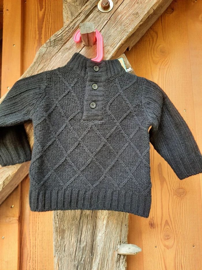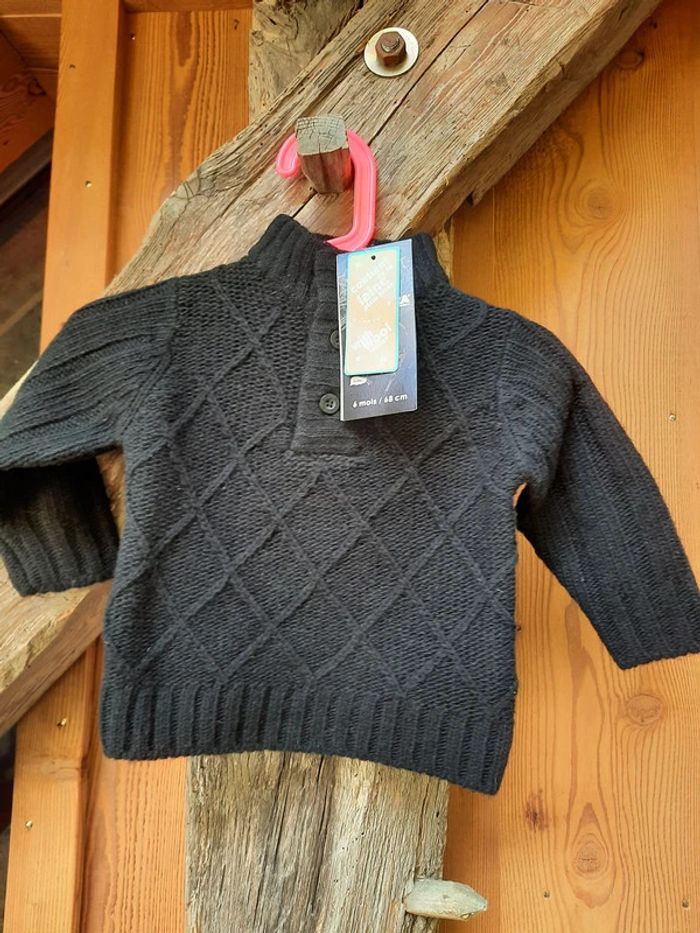 très beau pull en laine, noir, torsadé, orchestra, pour bébé garçon, 6 mois, neuf avec étiquette (il a été acheté avant que la carte club existe, donc le prix indiqué est bien le prix payé)