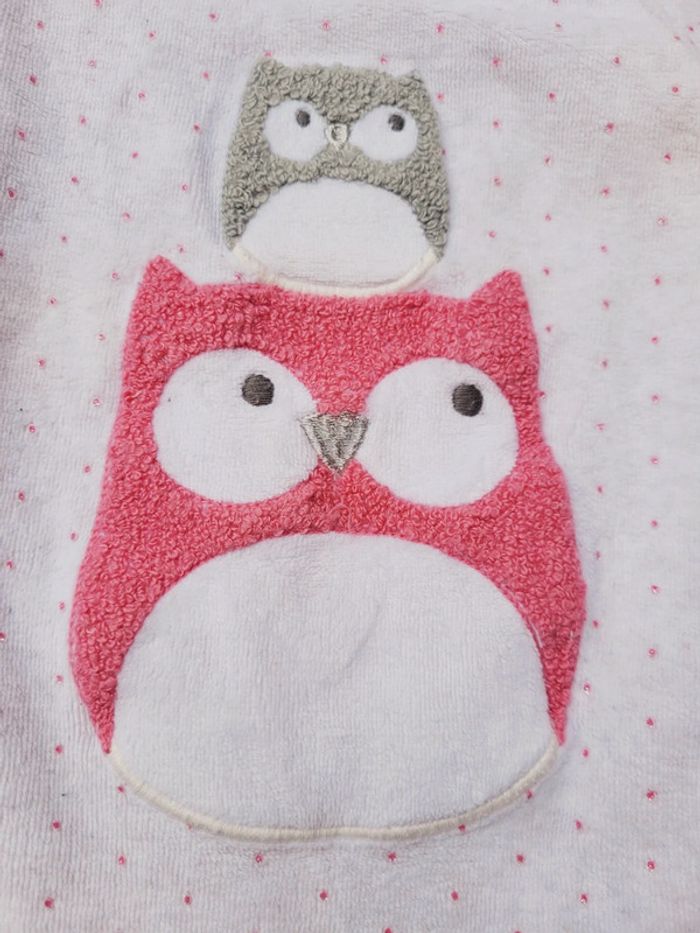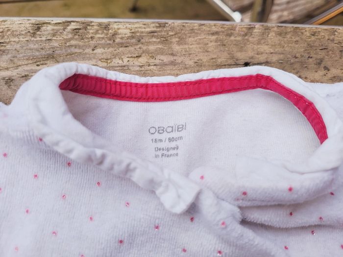 Superbe pyjama/grenouillère Obaïbi rose clair à poids fuchsia, motif 🦉 18 mois