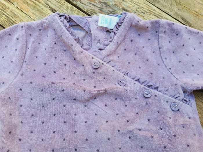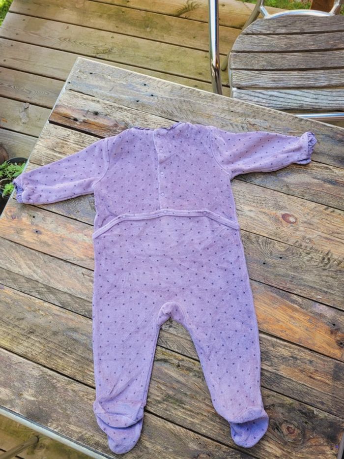 Superbe pyjama grenouillère velours Obaïbi, violet /mauve à poids, 6 mois
