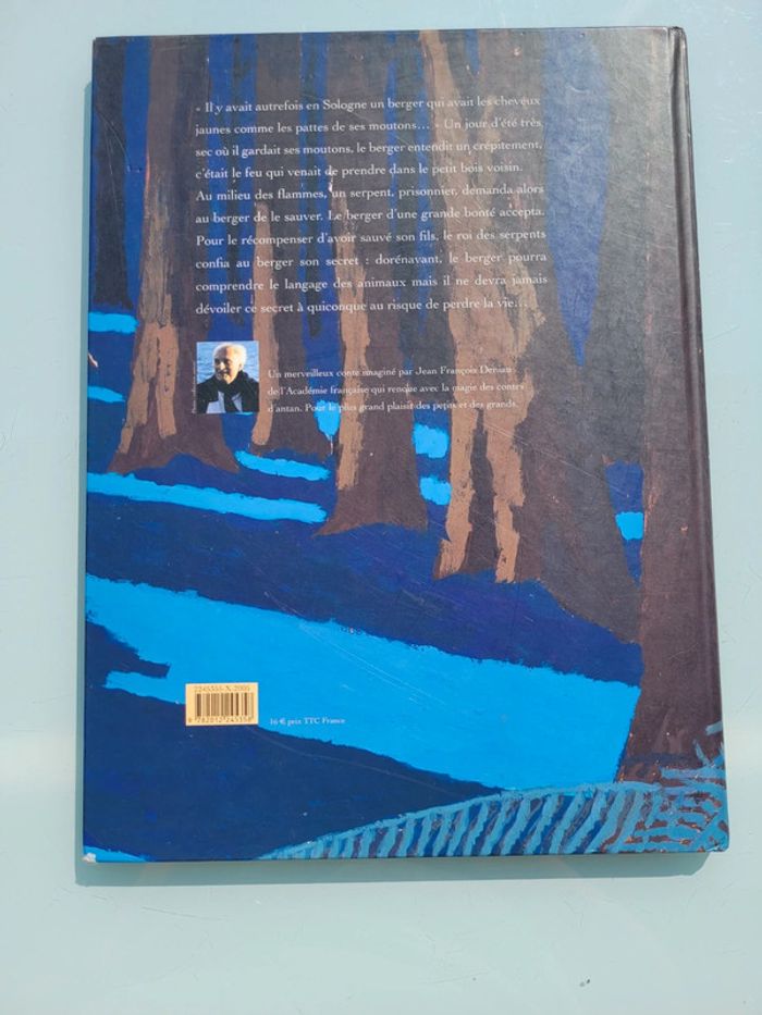 " Il y avait autrefois en Sologne un berger qui avait les cheveux jaunes comme les pattes de ses moutons... " Un jour d'été très sec où il gardait ses moutons, le berger entendit un crépitement, c'était le feu qui venait de prendre dans le petit bois voisin. Au milieu des flammes, un serpent, prisonnier, demanda alors au berger de le sauver. Le berger d'une grande bonté accepta. Pour le récompenser d'avoir sauvé son fils, le roi des serpents confia au berger son secret : dorénavant, le berger pourra comprendre le langage des animaux mais il ne devra jamais dévoiler ce secret à quiconque au risque de perdre la vie... Un merveilleux conte imaginé par Jean-François Deniau de l'Académie Française qui renoue avec la magie des contes d'antan. Pour le plus grand plaisir des petits et des grands Livre en bon état Pour voir mes autres livres enfants : #livreenfantmooglou
