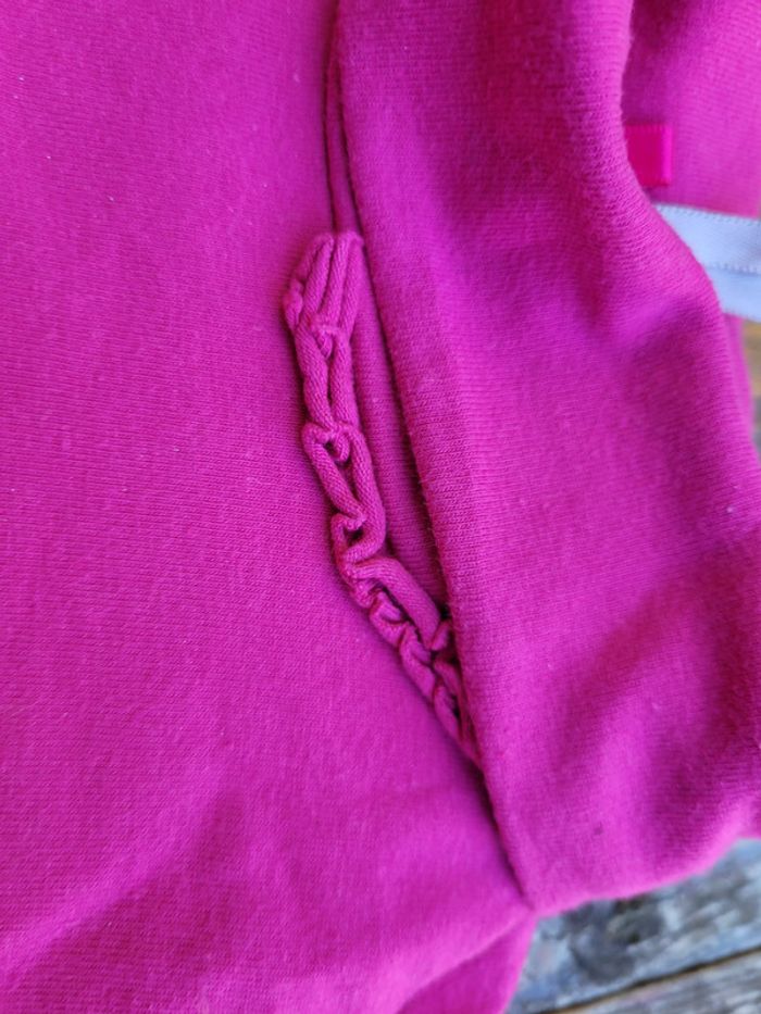 - 1 col roulé rose fuchsia, dentelle dans le cou, broderie et fleur tulle sur une manche