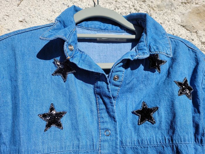 Superbe robe chemise en jeans Zara girls, étoiles perles, 9 ans - photo numéro 2
