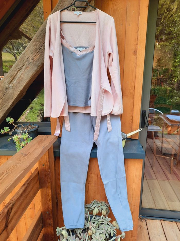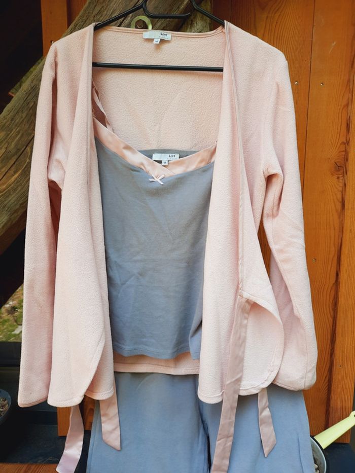 Tres joli pyjama 3 pièces,  pantalon, debardeur et peignoir polaire, taille 38/40 - photo numéro 1