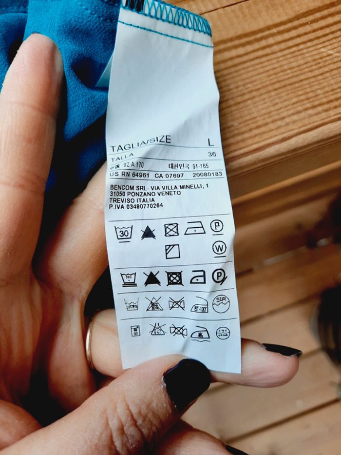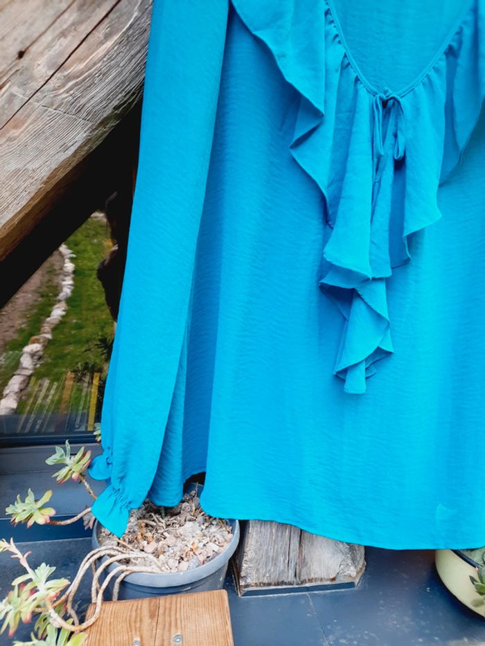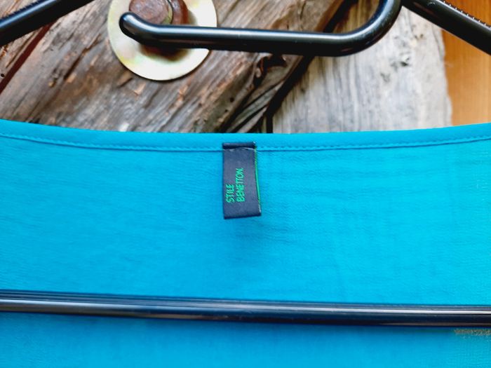 Superbe chemisier bleu/vert, taille L, col V, Benetton - photo numéro 7