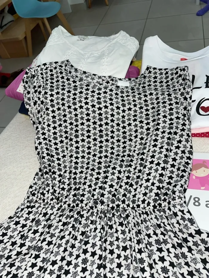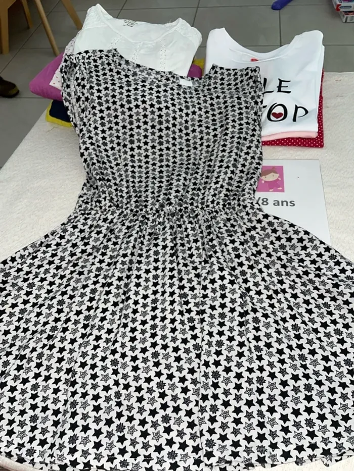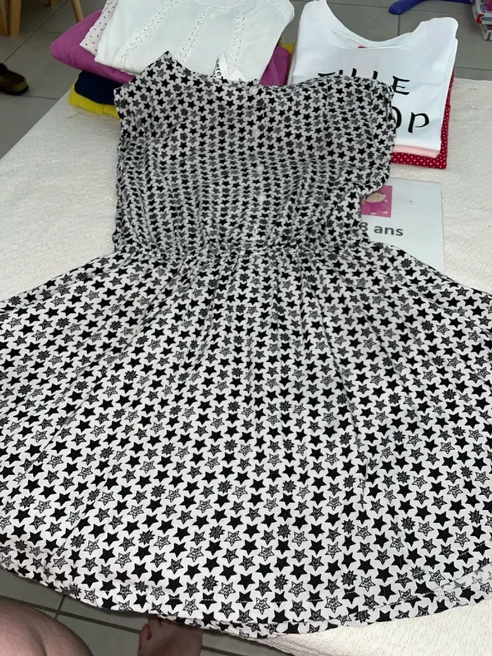 🤩 Pour confectionner un lot et ainsi optimiser vos frais, Utilisez #melanie85150 pour trier selon vos critères (marques, taille…).🌈 Robe C&A 8 ans neuve Blanche sans manches avec étoiles ⭐️ noires Taille élastique bas évasé 2 poches #melanie85150a8f