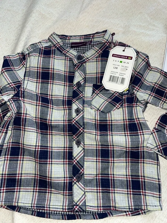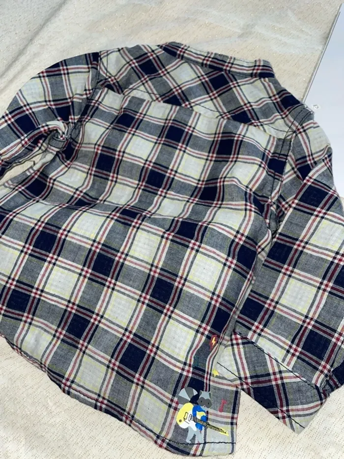 ➡️ chemise à carreaux col mao avec raton laveur guitariste à l’arrière neuve avec étiquette