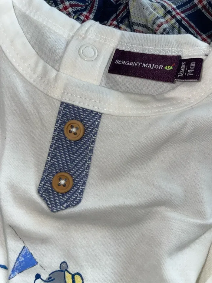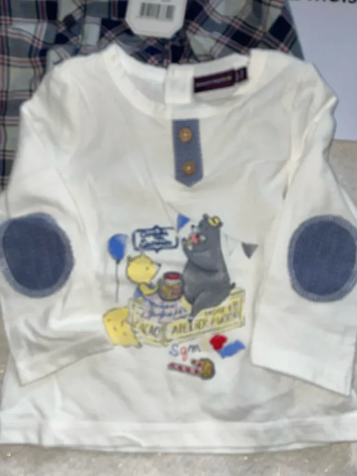 ➡️ tee shirt écru avec motifs ours et sucreries bleu ciel jaune pale et gris neuf sans étiquette
