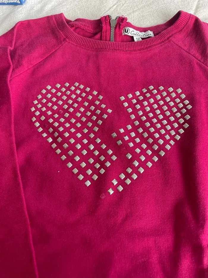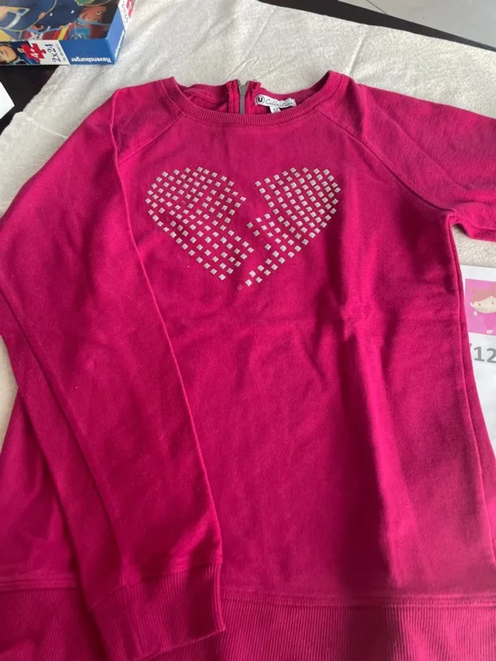 Rose fuchsia avec cœur ❤️ en relief argenté très bon état hormis qu’il manque quelques éléments au cœur