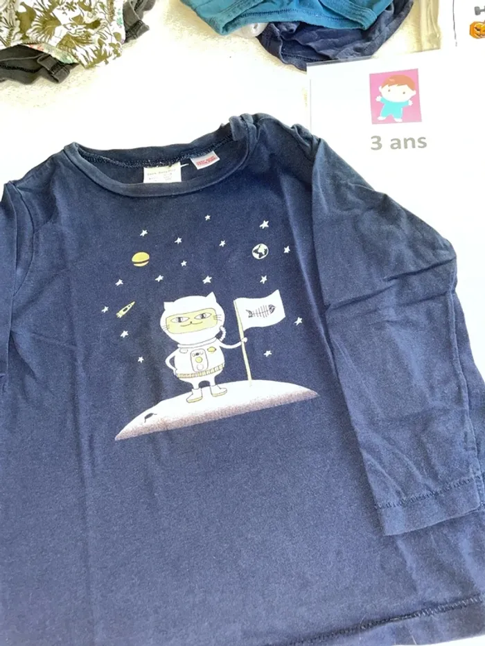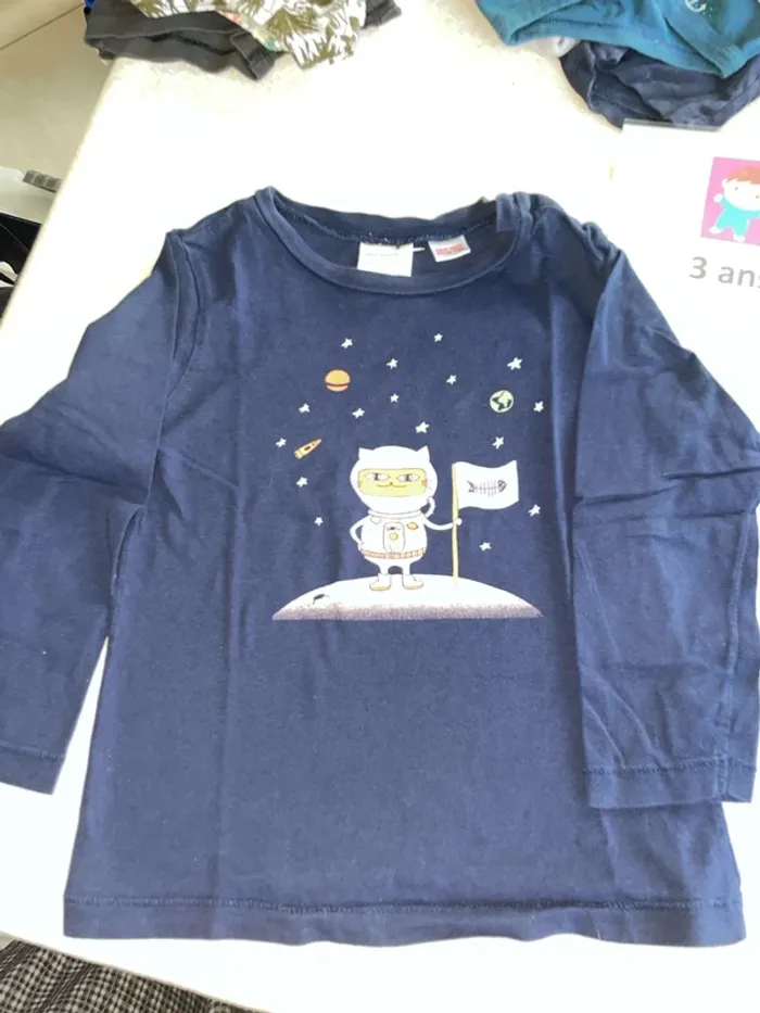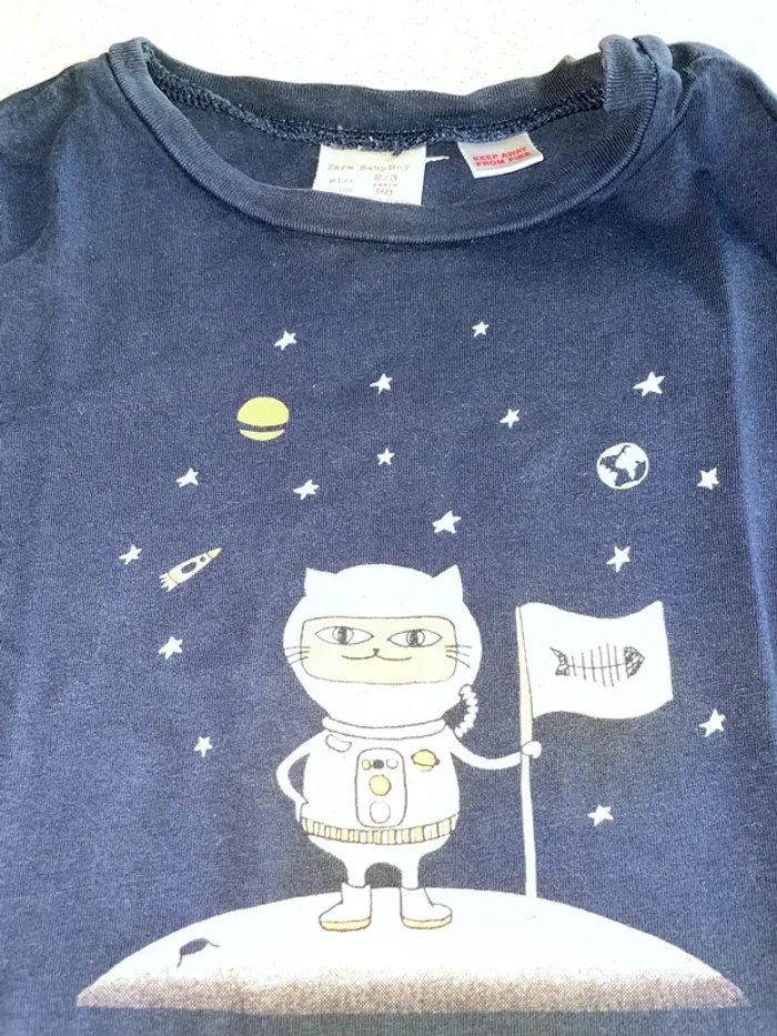 🤩 Pour confectionner un lot et ainsi optimiser vos frais, Utilisez #melanie85150 pour trier selon vos critères (marques, taille…).🌈 #melanie85150a2g #melanie85150a3g Tee shirt Zara 2-3 ans neuf Manches longues marines avec chat astronaute sur la lune 🌒 🚀 🌎 💫
