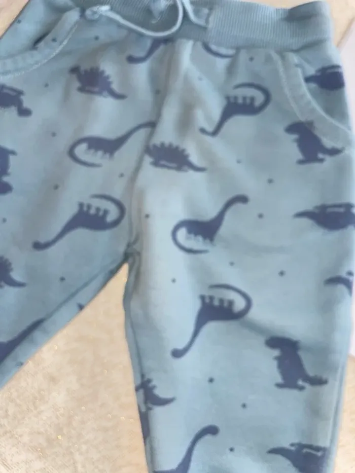 🤩 Pour confectionner un lot et ainsi optimiser vos frais, Utilisez #melanie85150 pour trier selon vos critères (marques, taille…).🌈 #melanie85150g6m ➡️ pantalon jogging tex 6 mois neuf Bleu ciel avec 🦖 bleu Taille élastique