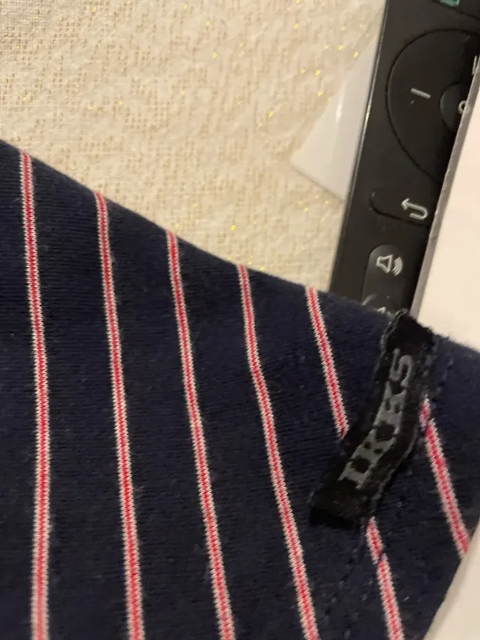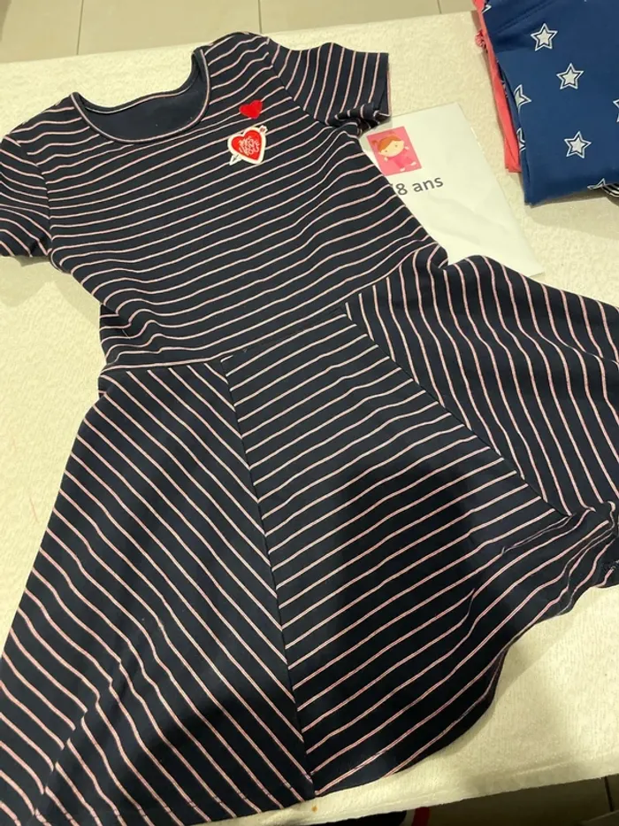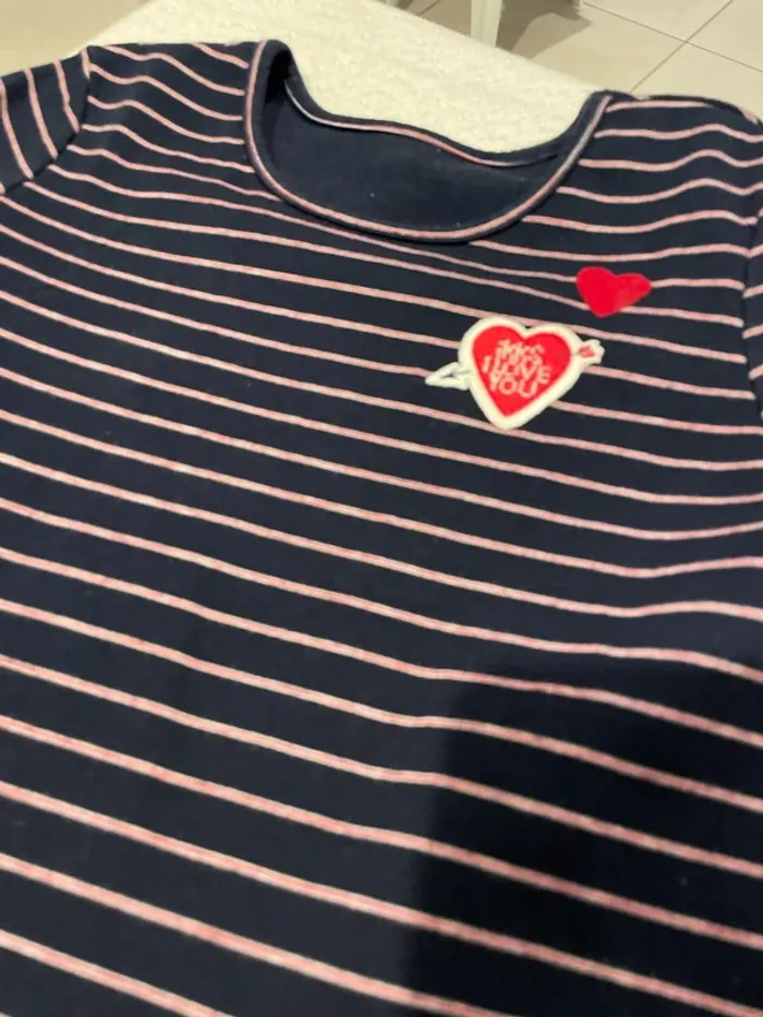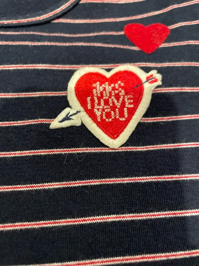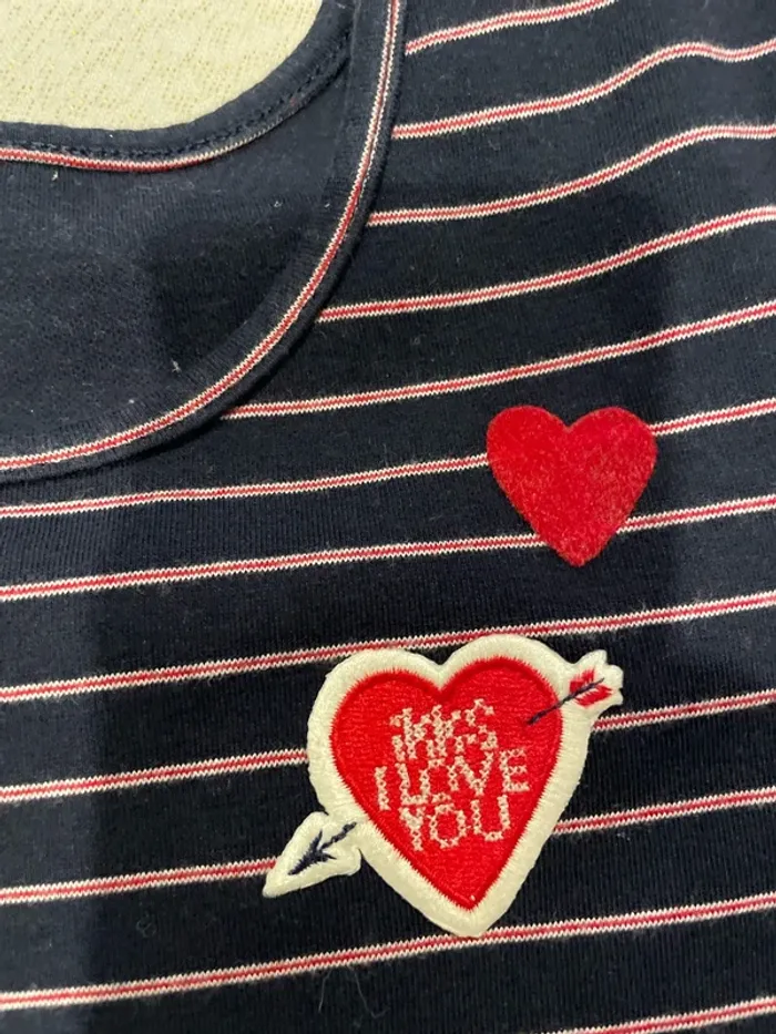 Coupe patineuse Marine avec fine, rayures blanches et rouge broderie cœur IKKS et cœur rouge ❤️