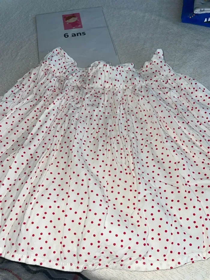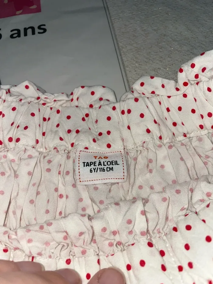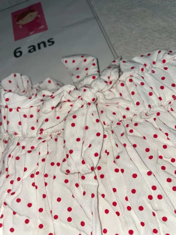 🤩 Pour confectionner un lot et ainsi optimiser vos frais, Utilisez #melanie85150 pour trier selon vos critères (marques, taille…).🌈 #melanie85150a6f Je tape à l’œil six ans Comme neuve Blanche à pois rouges Taille élastique avec un nœud