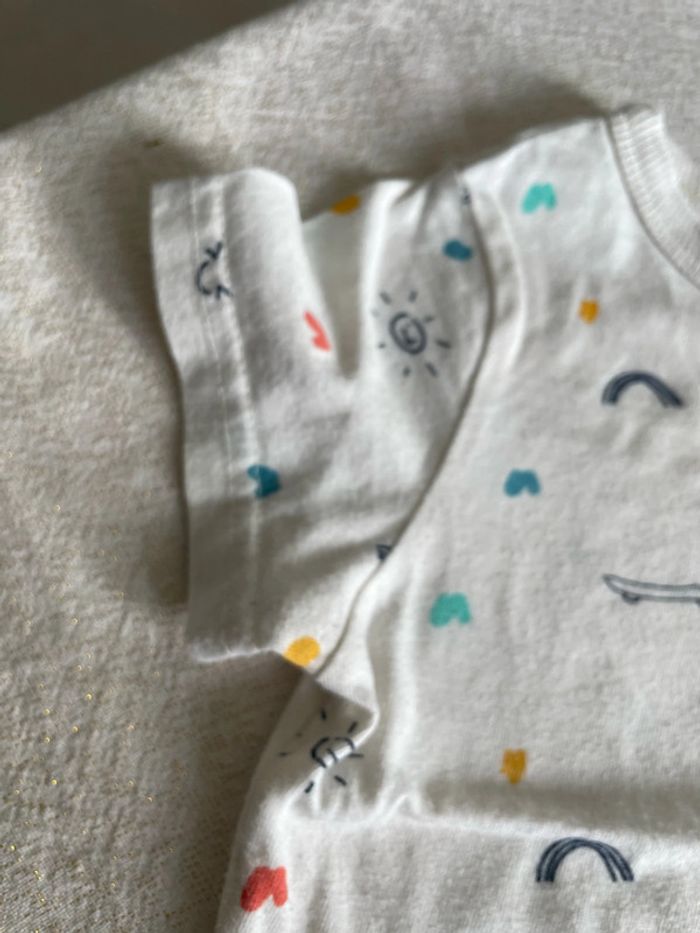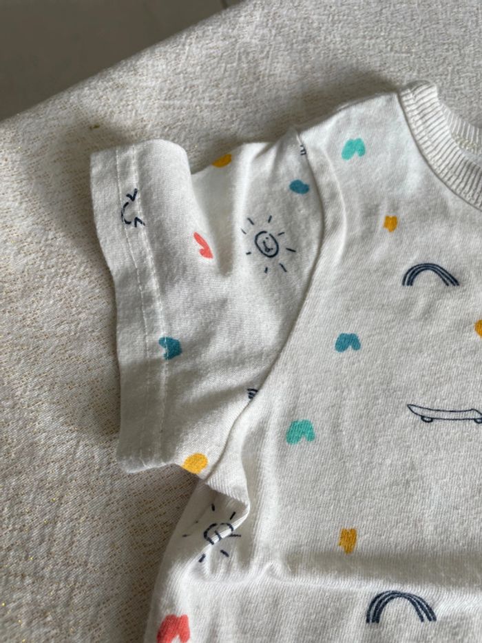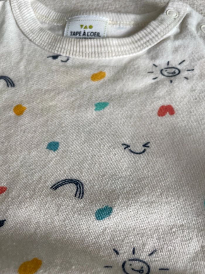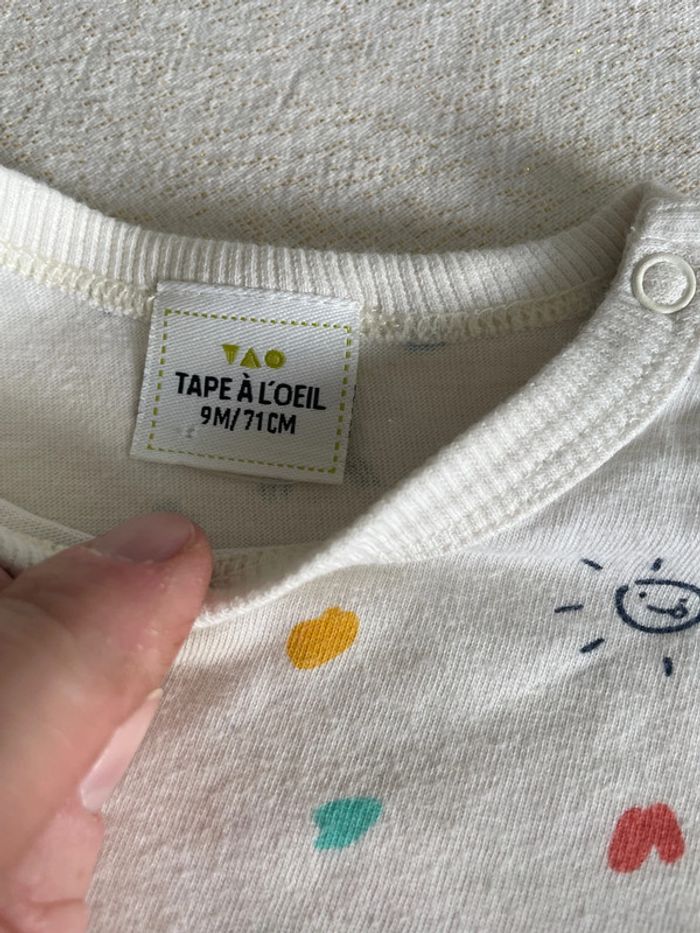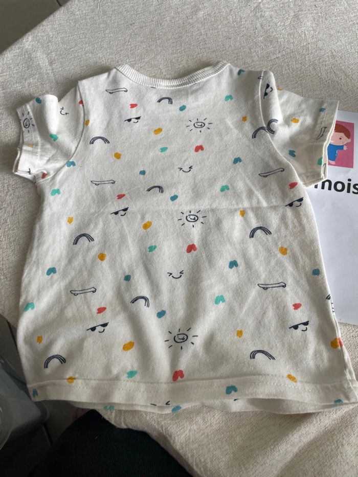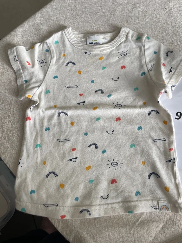 🤩 Pour confectionner un lot et ainsi optimiser vos frais, Utilisez #melanie85150 pour trier selon vos critères (marques, taille…).🌈 Teeshirt tape à l’œil 9 mois Crème avec motifs colorés Manches courtes #melanie85150g9m