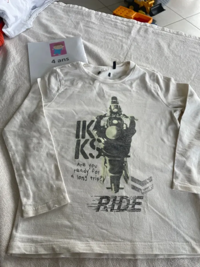 🤩 Pour confectionner un lot et ainsi optimiser vos frais, Utilisez #melanie85150 pour trier selon vos critères (marques, taille…).🌈 #melanie85150a4g T-shirt IKKS quatre Manches longues Crème avec moto 🏍️