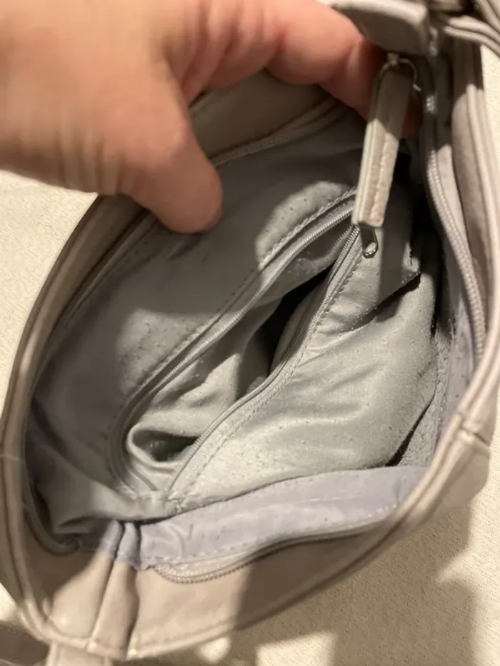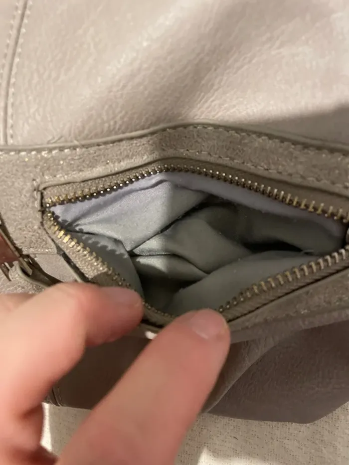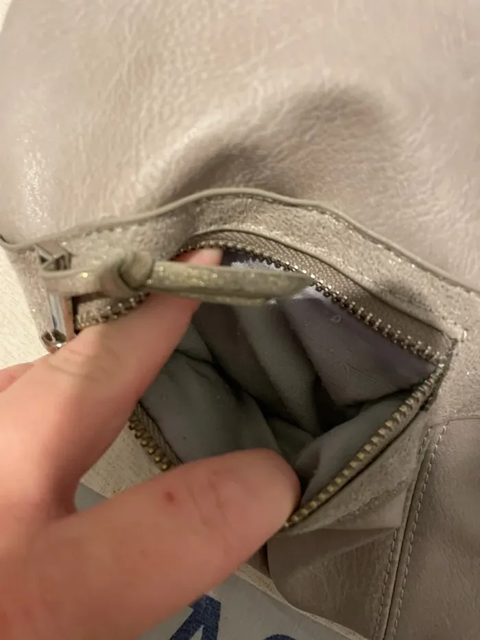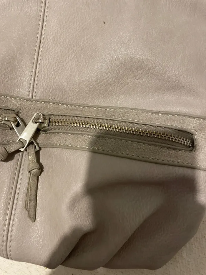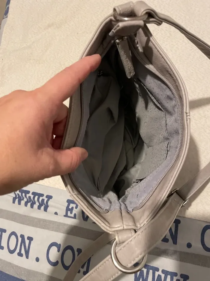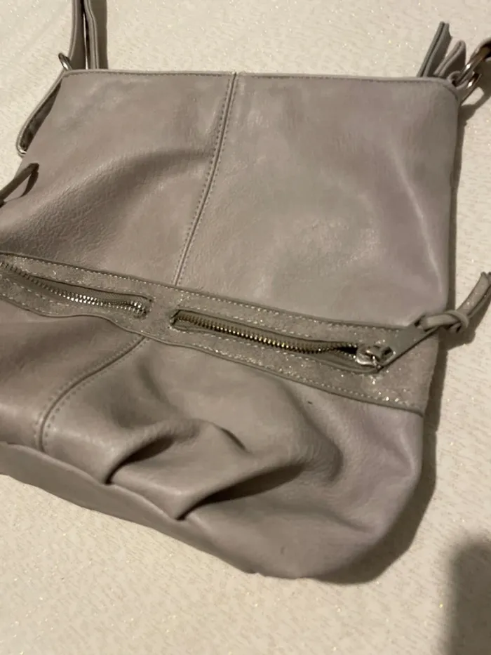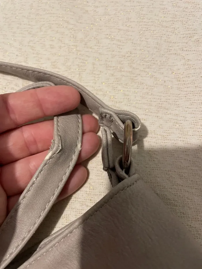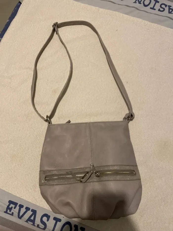 🤩 utilisez #melanie85150 pour trier selon vos critères (taille, marque…) Sac à main bandoulière avec sangle réglable Cuir synthétique beige avec une bandé pailletée dorée discret qui comporte 2 petites poches (idéal clés) Intérieur une grande poche avec une petite à fermeture éclair sur un côté Et 2 poches ouvertes sur l’autre côté Intérieur bouloche sans aucune tache État très bon état avec des petits défauts à peine visible car le sac et beige, cf dernières photos de chaque défaut Dimensions Fond environ 22 cm Ouverture environ 26 cm Hauteur environ 28 Largeur environ 10 cm Sac de taille moyenne #melanie85150femme