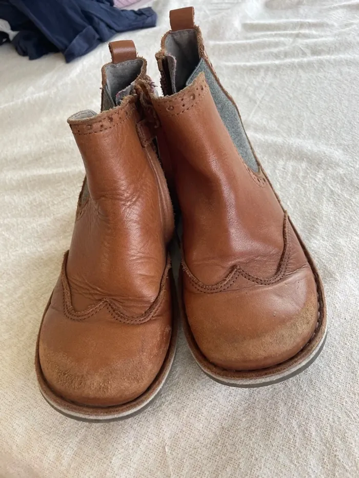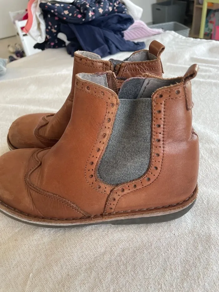 🤩 Pour confectionner un lot et ainsi optimiser vos frais, Utilisez #melanie85150 pour trier selon vos critères (marques, taille…).🌈 #melanie85150a6f #melanie85150a7f #melanie85150chaussures Bottines Cyrillus 31 Cuir Camel avec bande élastique gris sur le côté Et fermeture éclair Râpées sur le bout