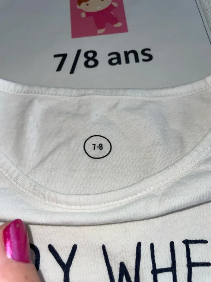 🤩 Pour confectionner un lot et ainsi optimiser vos frais, Utilisez #melanie85150 pour trier selon vos critères (marques, taille…).🌈 #melanie85150a8f #melanie85150a7f T-shirt Manches courtes Éclatant avec écriture, marine et rose,