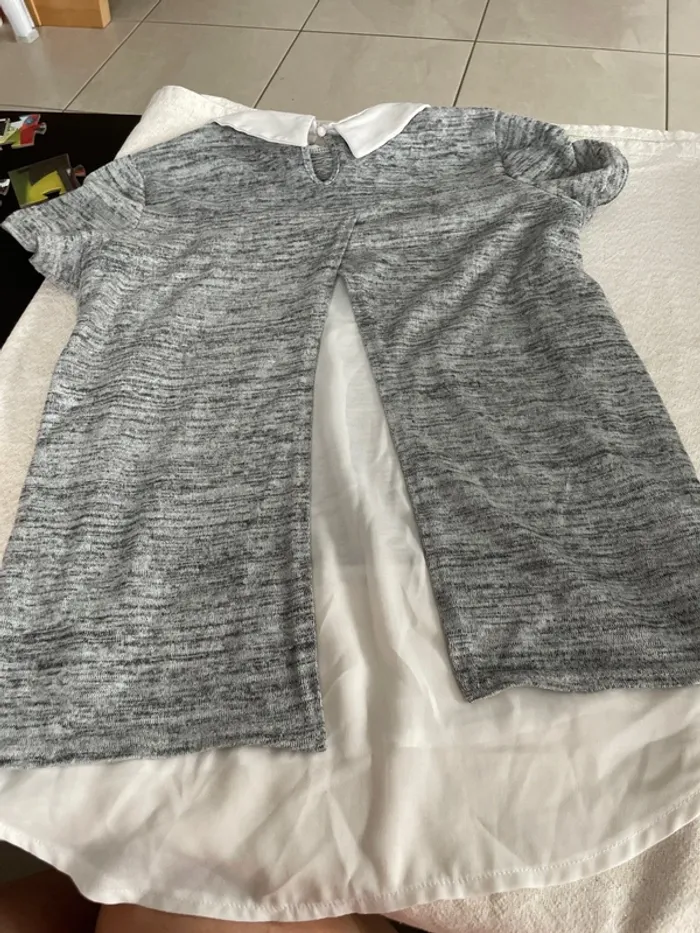 🤩 Pour confectionner un lot et ainsi optimiser vos frais, Utilisez #melanie85150 pour trier selon vos critères (marques, taille…).🌈 #melanie85150femme Haut manches courtes ligne à suivre M Tunique voilage écru avec col Et mailles légères croisées dans le dos Porté une seule fois