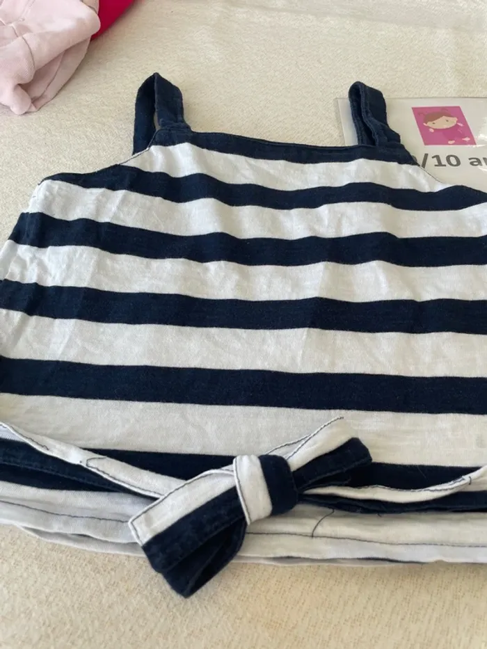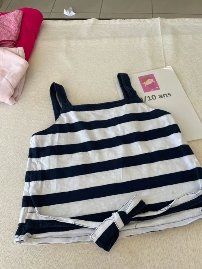 🤩 Pour confectionner un lot et ainsi optimiser vos frais, Utilisez #melanie85150 pour trier selon vos critères (marques, taille…).🌈 #melanie85150a10f T-shirt court 10 ans Débardeur Marine et blanc à rayures et nœud sur le devant