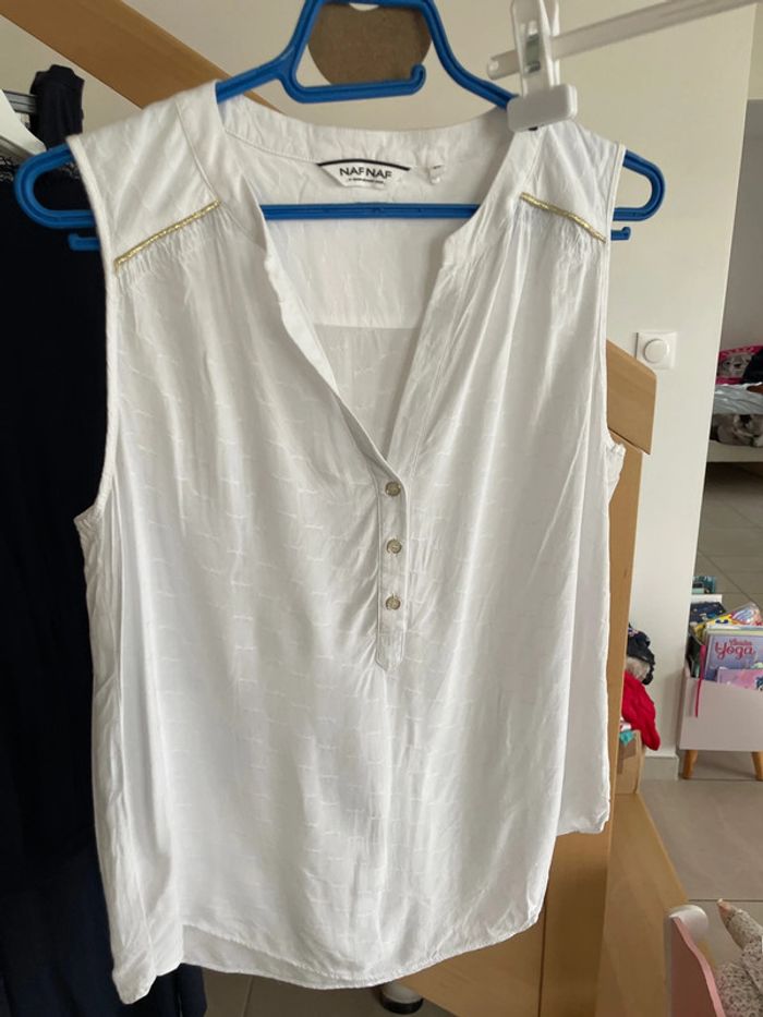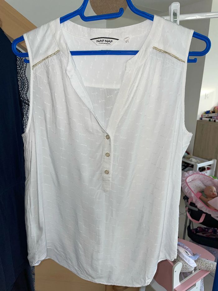🤩 Pour confectionner un lot et ainsi optimiser vos frais, Utilisez #melanie85150 pour trier selon vos critères (marques, taille…).🌈 Haut blouse naf naf taille S neuve Blanc impeccable avec fils broderie et liserés dorés Bouton assortis Bas arrondi #melanie85150femme