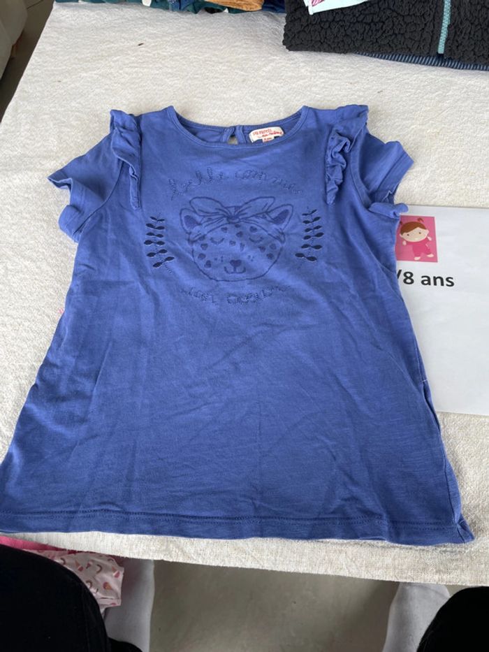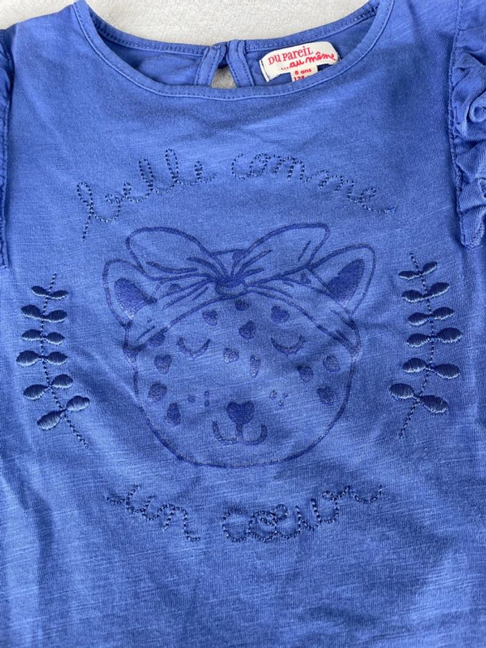 🤩 Pour confectionner un lot et ainsi optimiser vos frais, Utilisez #melanie85150 pour trier selon vos critères (marques, taille…).🌈 #melanie85150a8f T-shirt du pareil au même huit ans Manches courtes avec volant aux épaules Bleu avec ton sur ton Broderie et dessin, belle comme un cœur ❤️ Excellent état