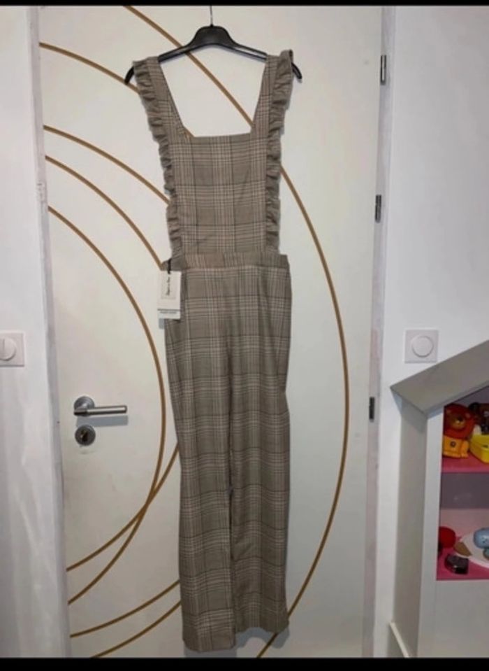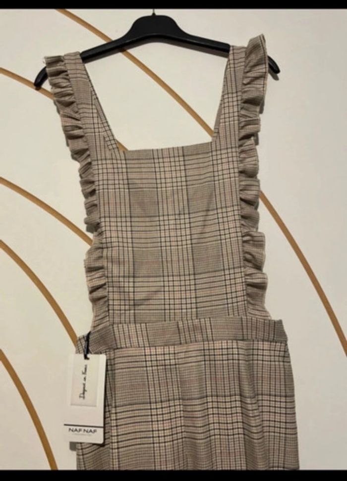 🤩 Pour confectionner un lot et ainsi optimiser vos frais, Utilisez #melanie85150 pour trier selon vos critères (marques, taille…).🌈 #melanie85150femme Combinaison salopette naf naf 42 neuf avec étiquette Beige marron caramel noir et rose Carreaux de fins traits effet bur berry Volants sur les bretelles réglables Fermeture éclair sur le côté Poches