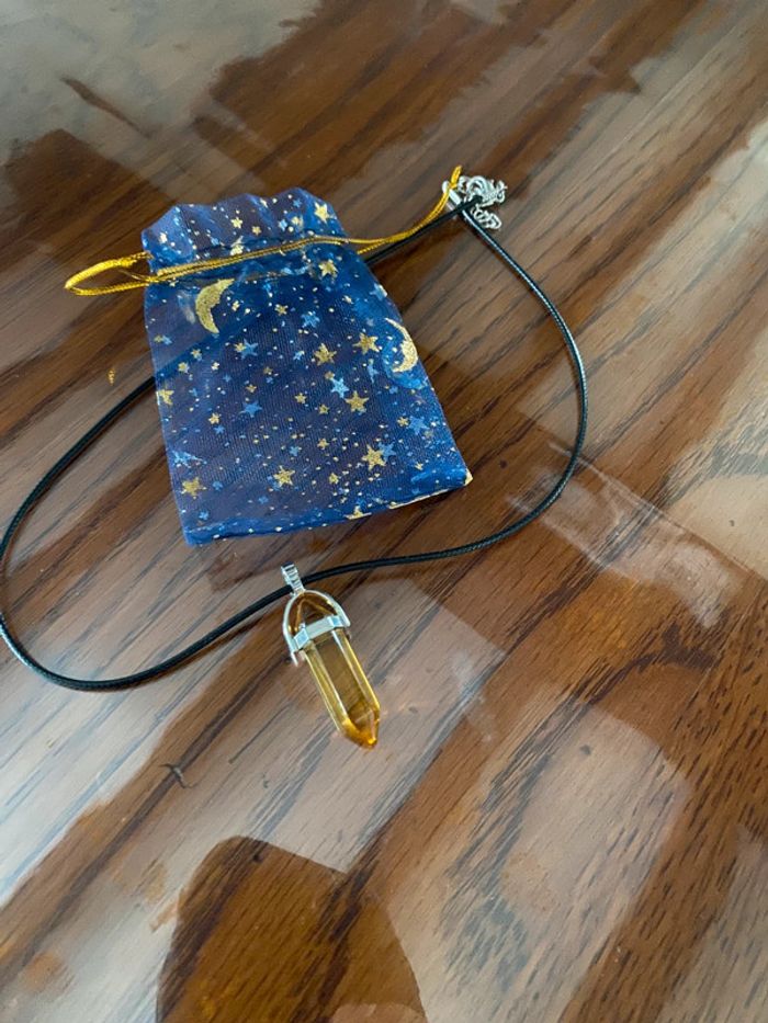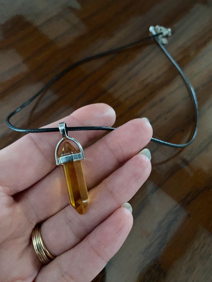 Jolie collier / pendentif en cristal jaune hexagonal cordon en cuir - photo numéro 3