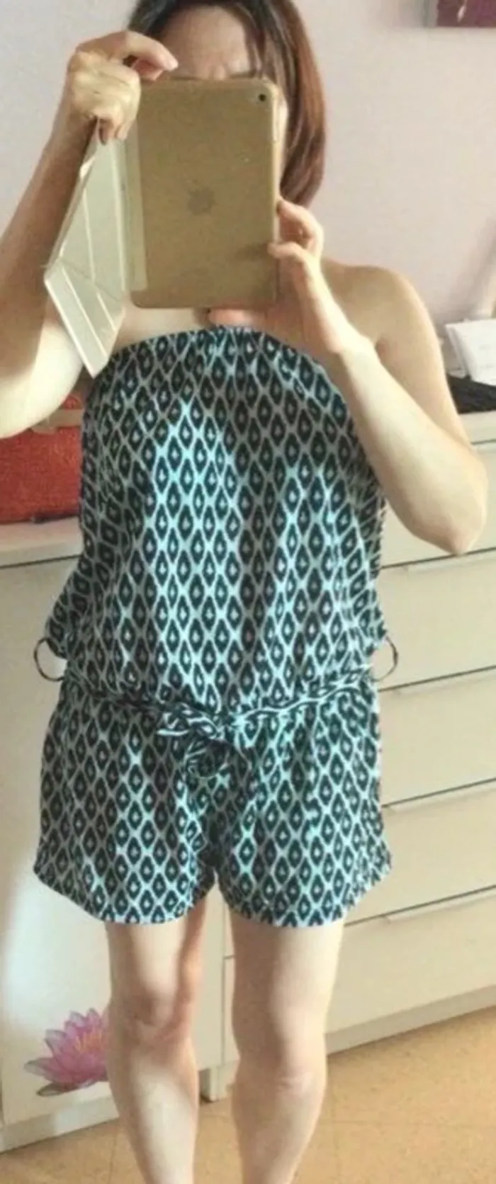 Imprimé ethnique noir, vert et blanc. Taille 36-38, ajustable grâce à l’élastique à la taille et sur le bustier. Lien à nouer au cou. En très bon état, très peu porté . Maison non fumeur et sans animaux. Articles emballés avec soin. Les frais d’envoi et de protection acheteurs font augmenter le prix total, aussi rentabilisez les frais d’envoi en achetant en lot, je ferai une réduction. Je vends des vêtements et chaussures femme et enfant en différentes tailles, des jouets, des livres, des DVD et beaucoup d’autres choses. Je mets régulièrement de nouvelles annonces. N’hésitez pas à vous abonner si mon dressing vous plait. Bon shopping. Chrystel