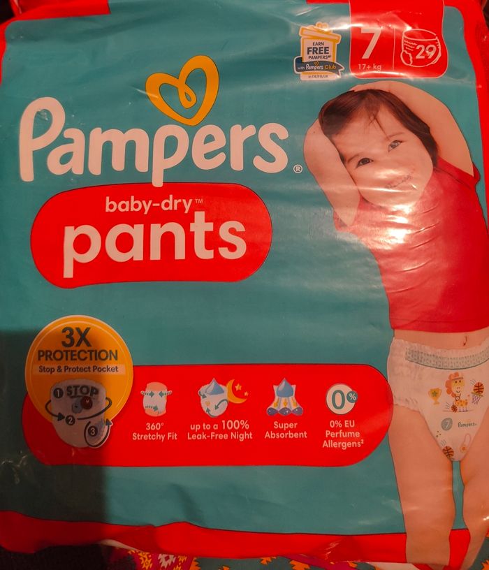 6 paquets de couches Pampers pants taille 7 soit un total de 174 couches 👌👌🤩🤩
