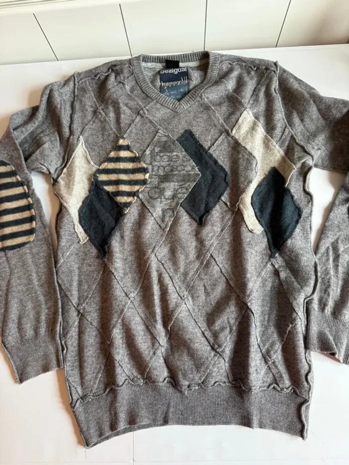 Pull desigual taille S gris en très bon état - photo numéro 1