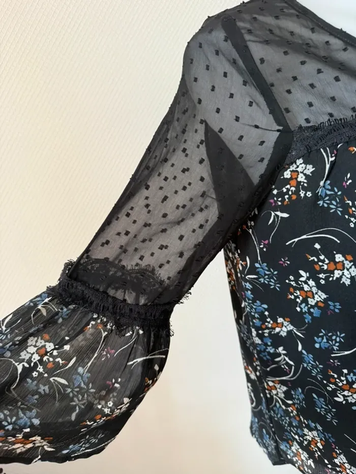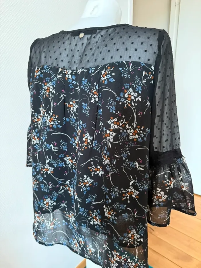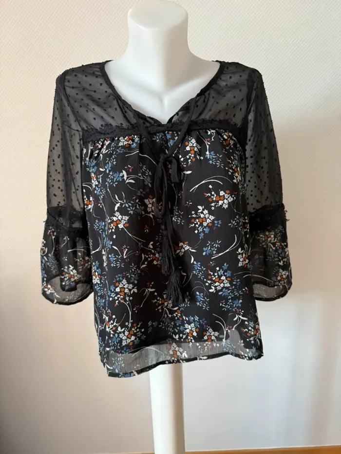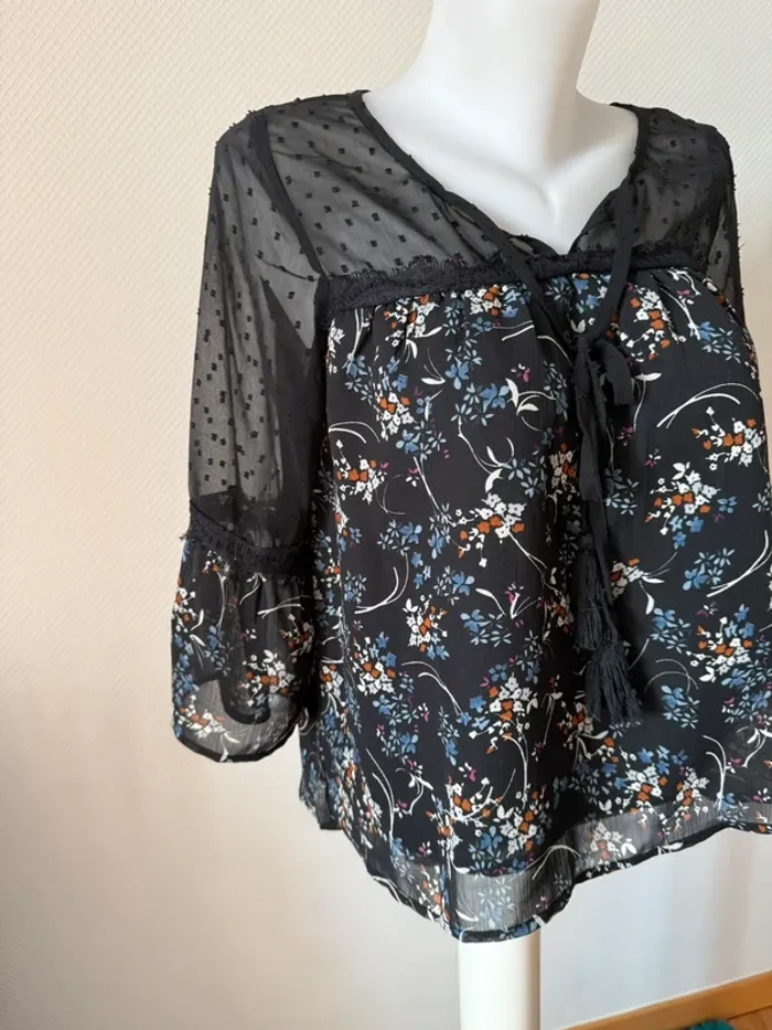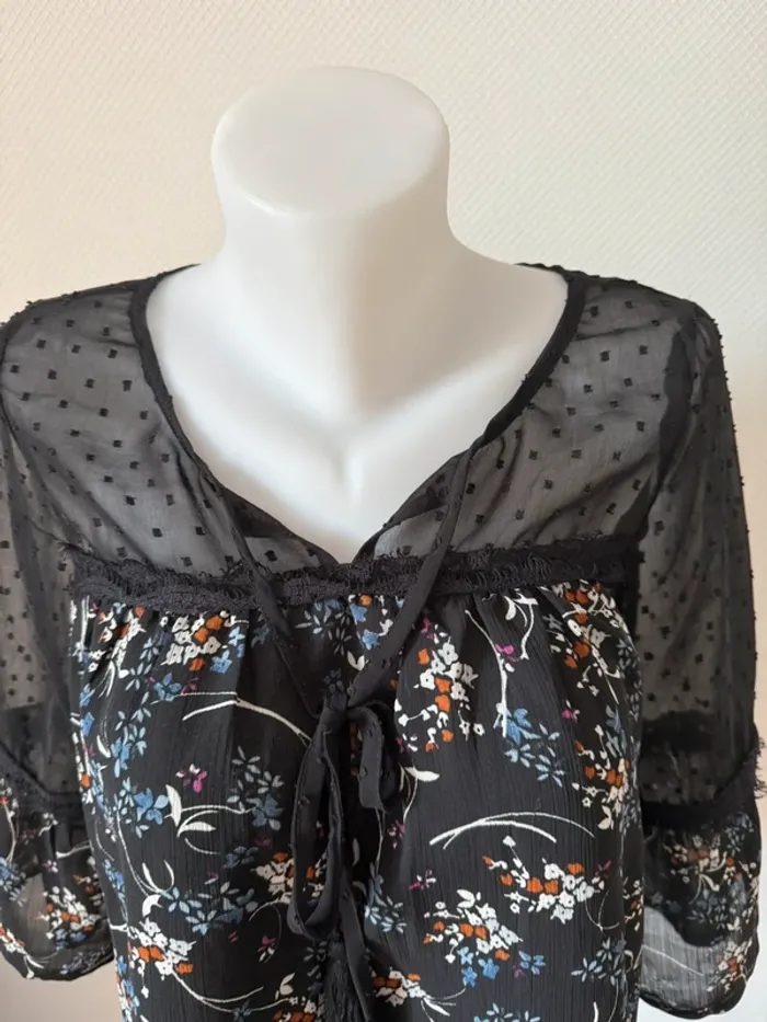 Blouse noir à fleur en tres bon état taille S Deeluxe