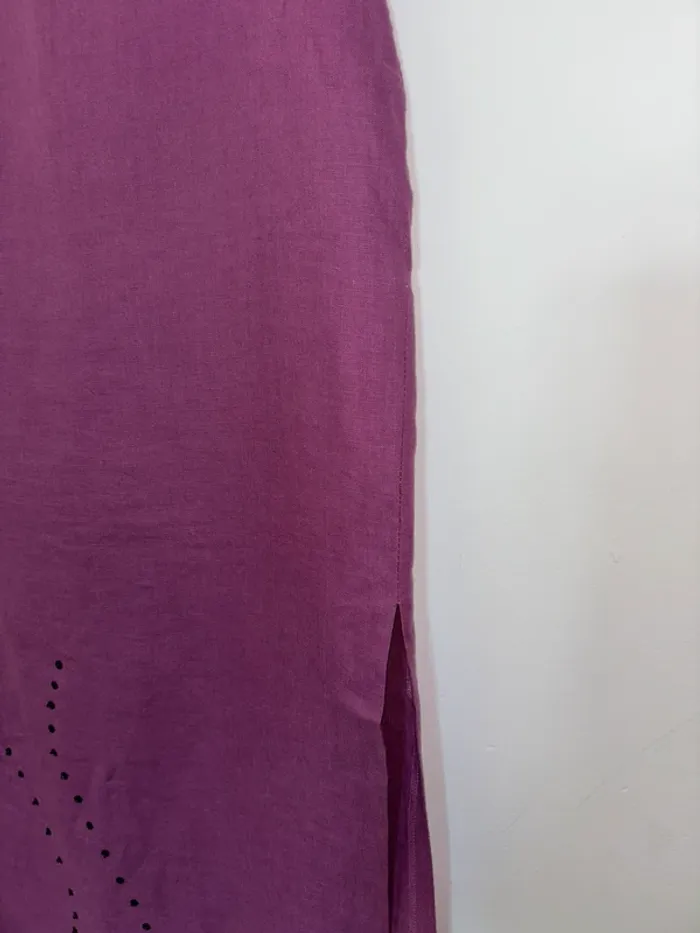 Jupe droite très longue en lin brodé main taille 38 - photo numéro 9