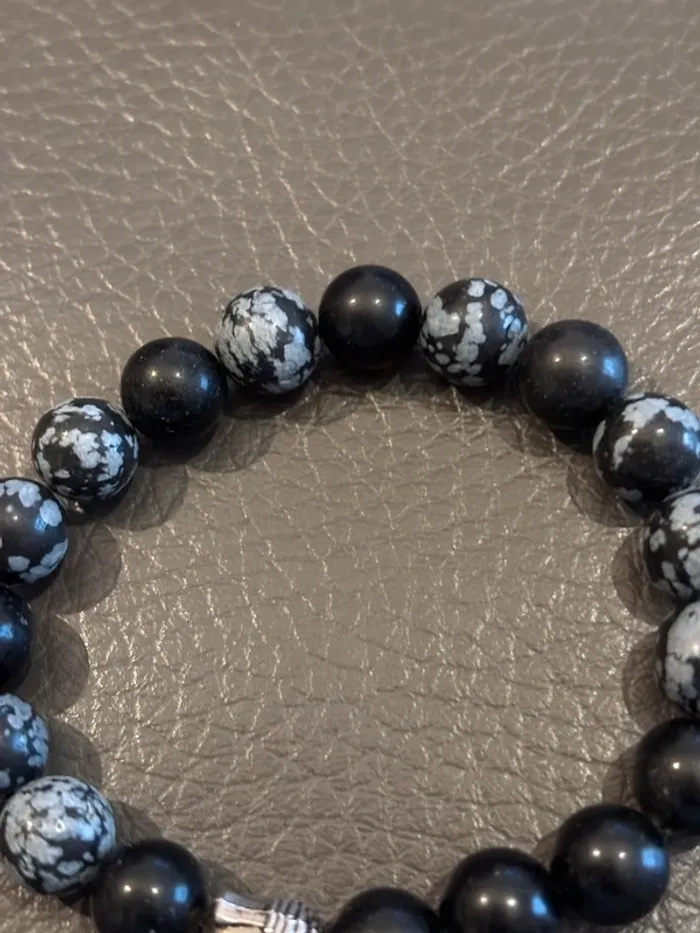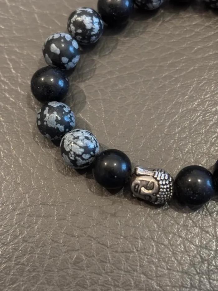 En très bon état En onyx, obstidienne flocon de neige et une perle bouddha Modèle mixte Pensez à faire des lots pour bénéficier de réductions