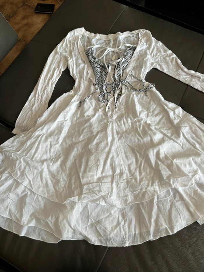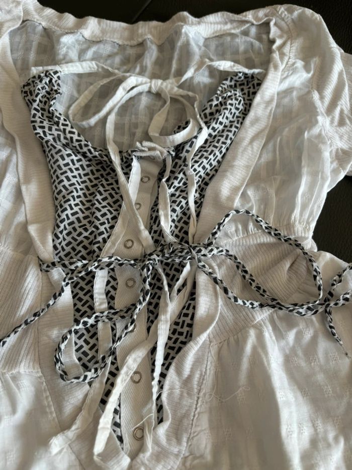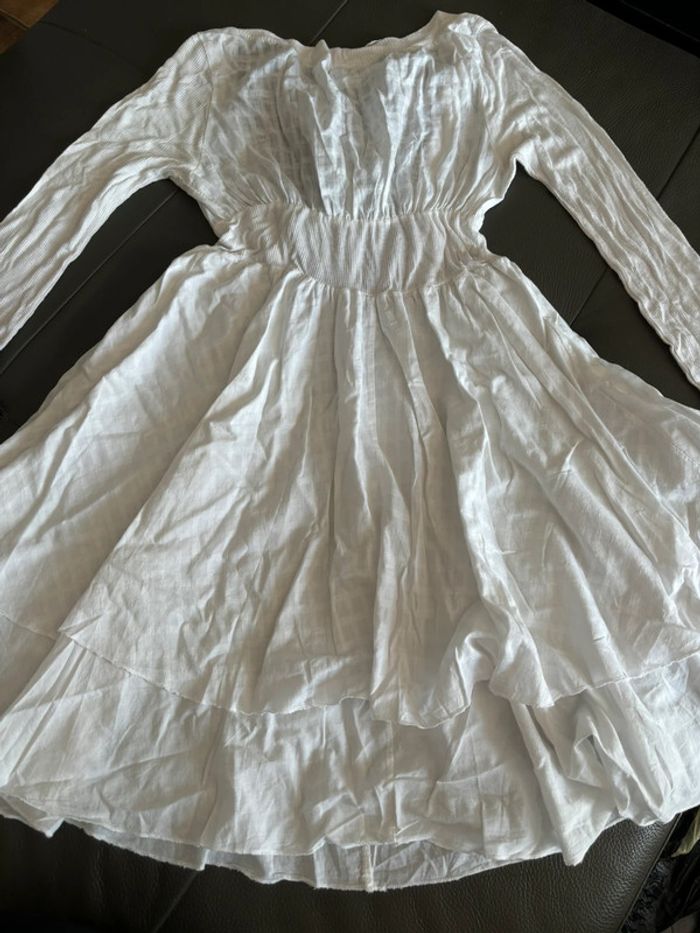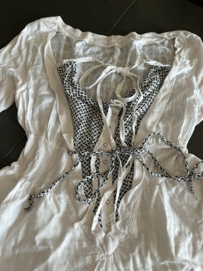 En très bon état Cintrée à la taille par des côtes (élastique) Manches longues 100% coton. Pas de transparence en bas, il il a deux épaisseurs Jolie ligne Longueur envíron 90 cm Pensez à faire des lits pour bénéficier de réductions