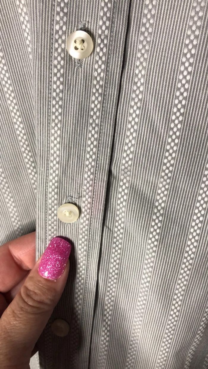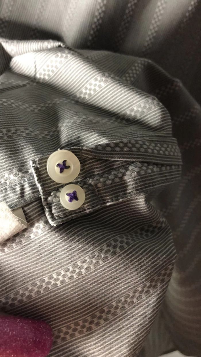En très bon état mais une auréole devant ( voir derrière photo) Possibilité de mettre des boutons de manchettes Boutons de rechange Pensez à faire des lots pour bénéficier de réductions